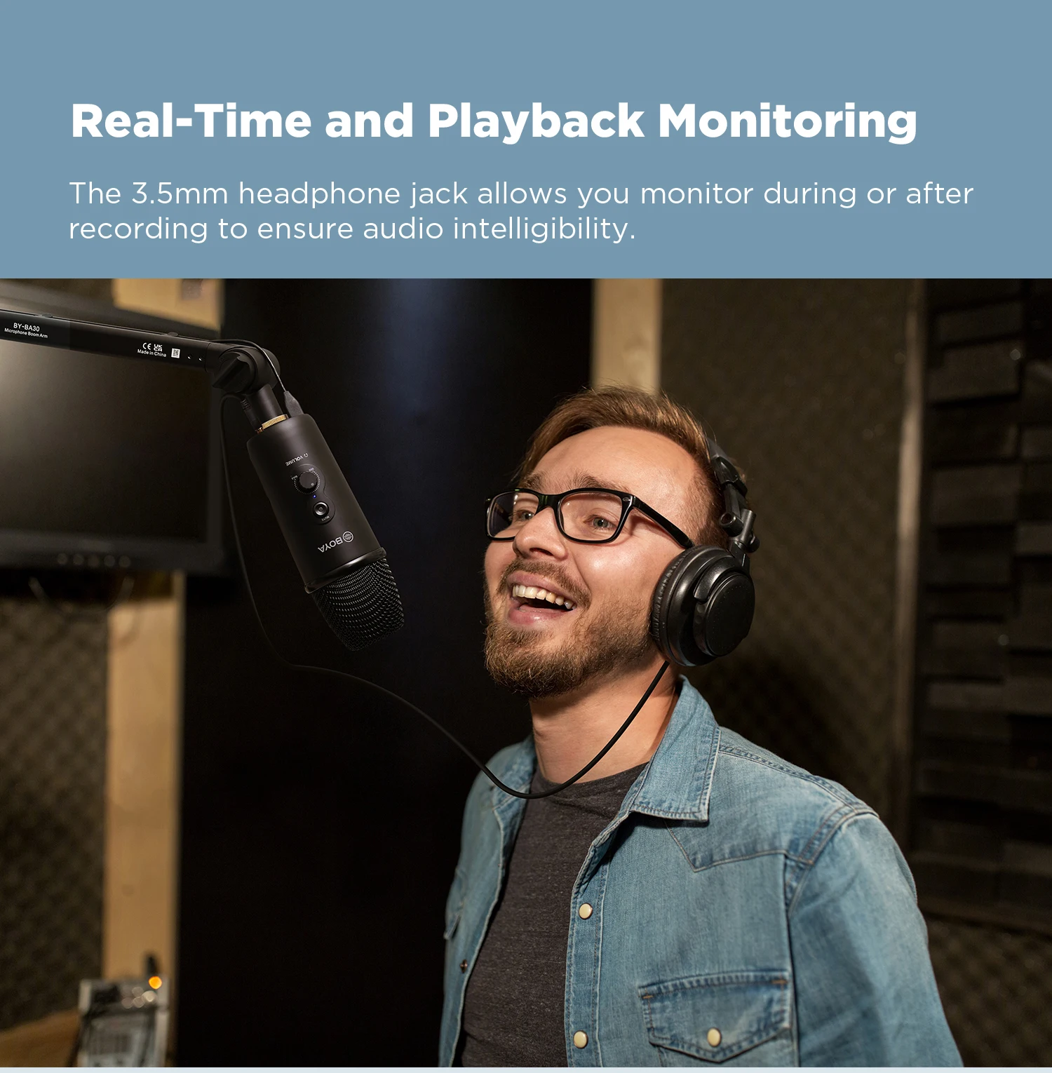 3,5 мм монитор разъем позволяет контролировать в режиме реального времени во время трансляции, чтобы убедиться, что вы Звук отличный. Кроме того, вы можете воспроизводить его после записи, чтобы обеспечить разборчивость звука.