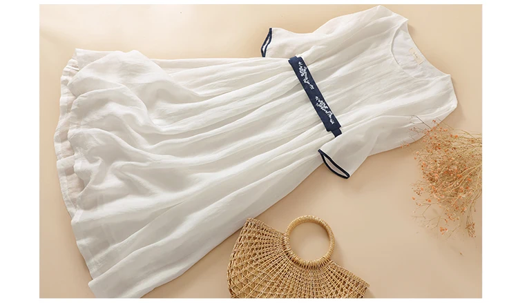 Размера плюс 4XL женское летнее платье с вышивкой и круглым вырезом, элегантное винтажное свободное повседневное женское платье с коротким рукавом