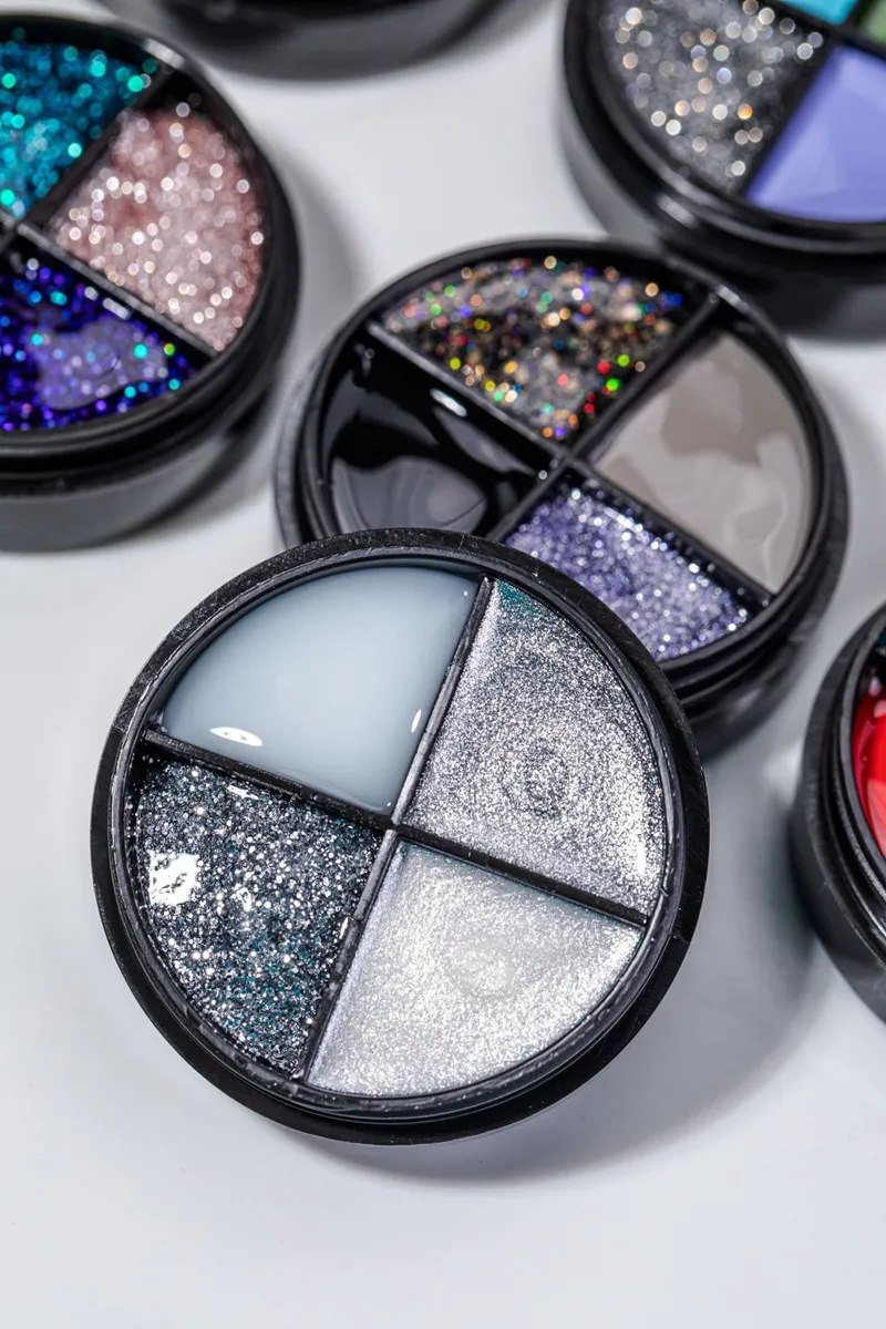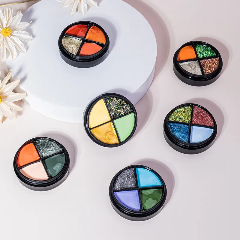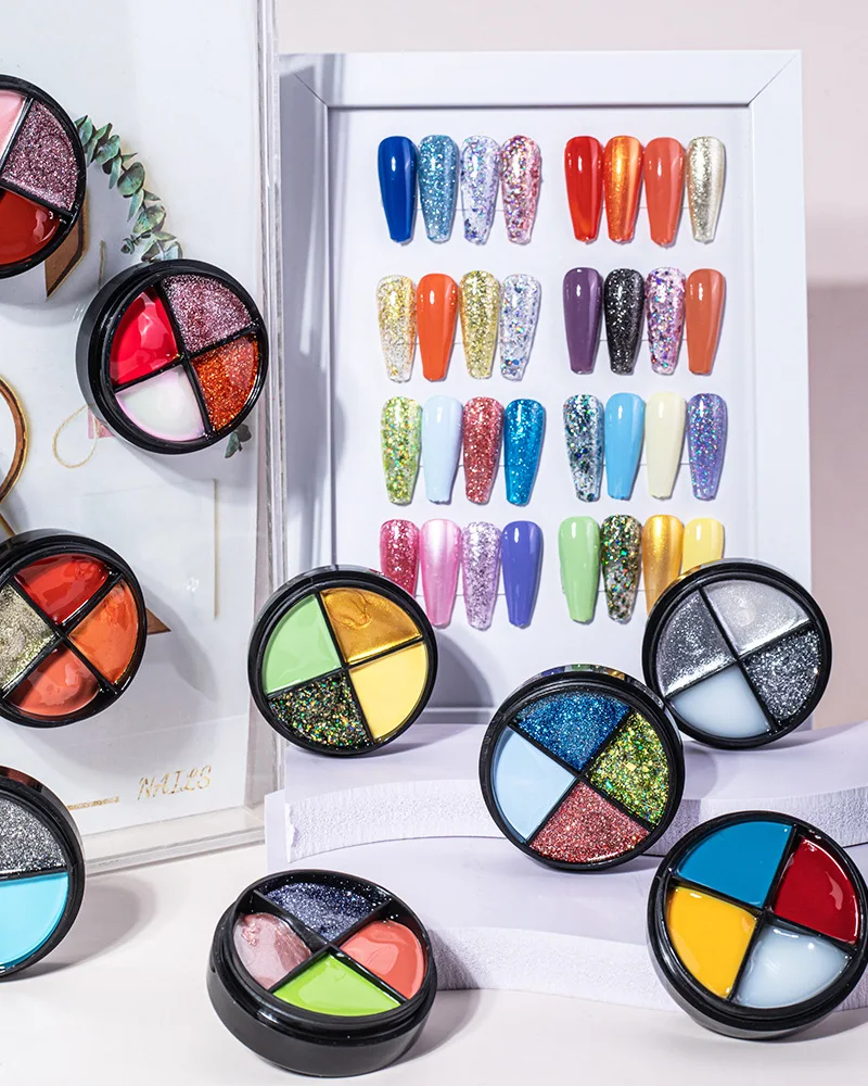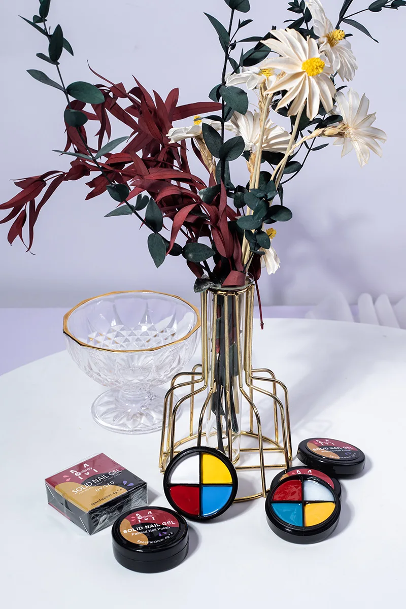 Один из четырех цветов, перевернутый вверх дном, без клея, легко носить с собой, не легко смешивать цвета, в основном может удовлетворить ваши потребности в цветах ногтей.