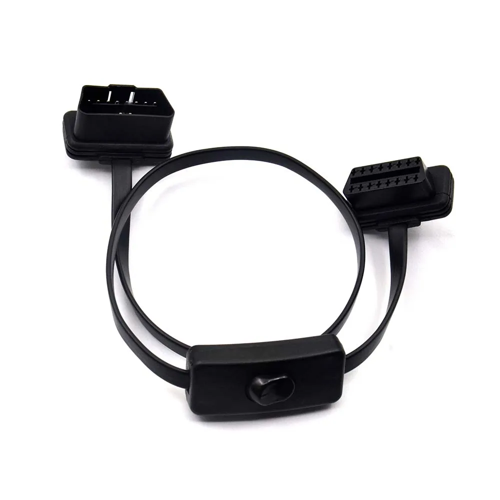 Плоский тонкий интерфейс OBD с переключателем OBDII OBD 2 16pin Штекерный разъем ELM327 диагностический удлинитель Кабель сканер разъем