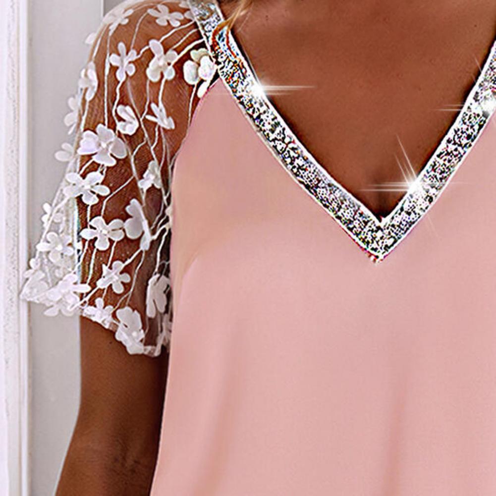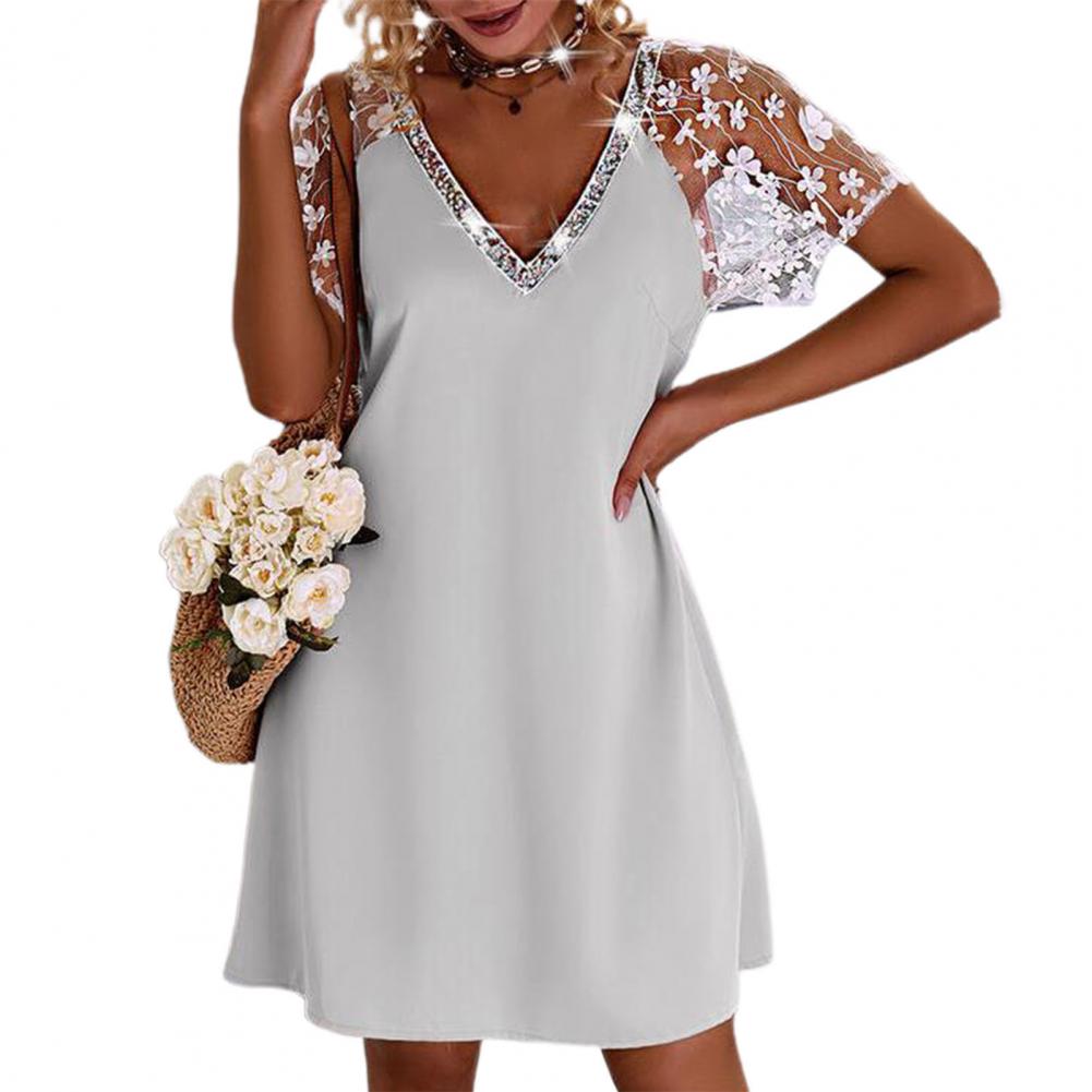 Женское платье с v-образным вырезом и блестящим воротником, свободное кружевное мини-платье с вышивкой и коротким рукавом, женская одежда