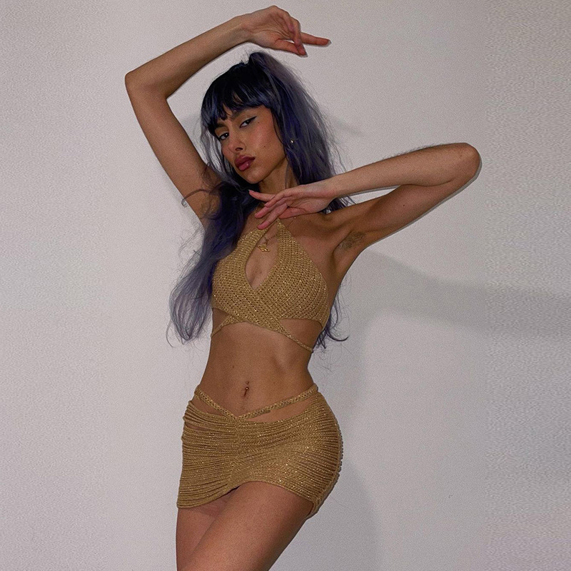 Длина топа: 23 обхват груди: 80 Обхват талии: 74 бедра: 84 Длина юбки: 29