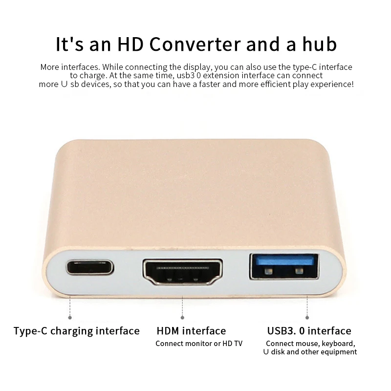 3 в 1 позолоченный кабель-адаптер Type-C с разъемом Type-C/HDMI/USB