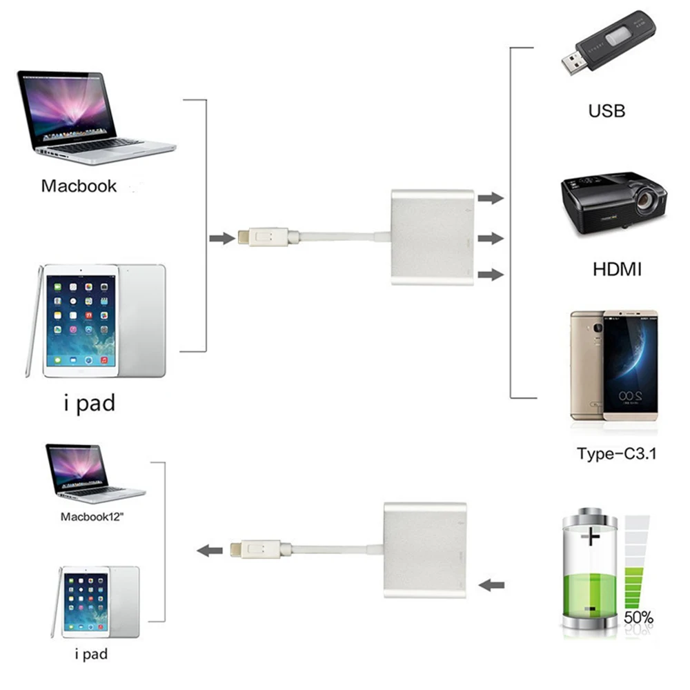 Новый мультипорт для USB 3.1 Type C Type-C в HDMI HD TV USB 3.0 TV type-c Type кабель адаптер конвертер 4K USB интерфейс конвертер