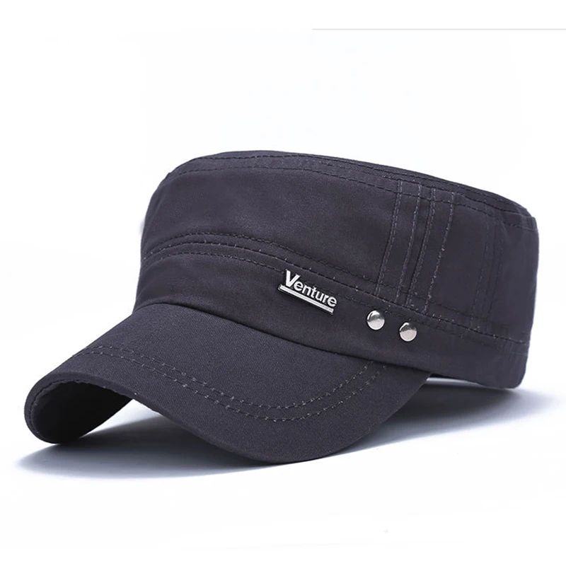 Четырехсезонная универсальная шляпа с плоским верхом, с модным логотипом, украшенным на теле шляпы, подчеркнув личный вкус. Дышащие и удобные в носке. Популярные элементы, потертые и потертые, в стиле ретро.