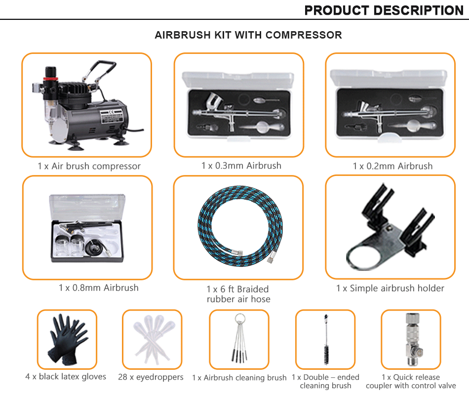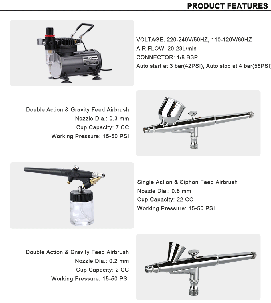 Набор Аэрограф с компрессором 3 аэрограф пушки 0,2/0,3/0,8 мм для хобби тату Нейл арт Краска и аксессуары для аэрографа Набор для очистки