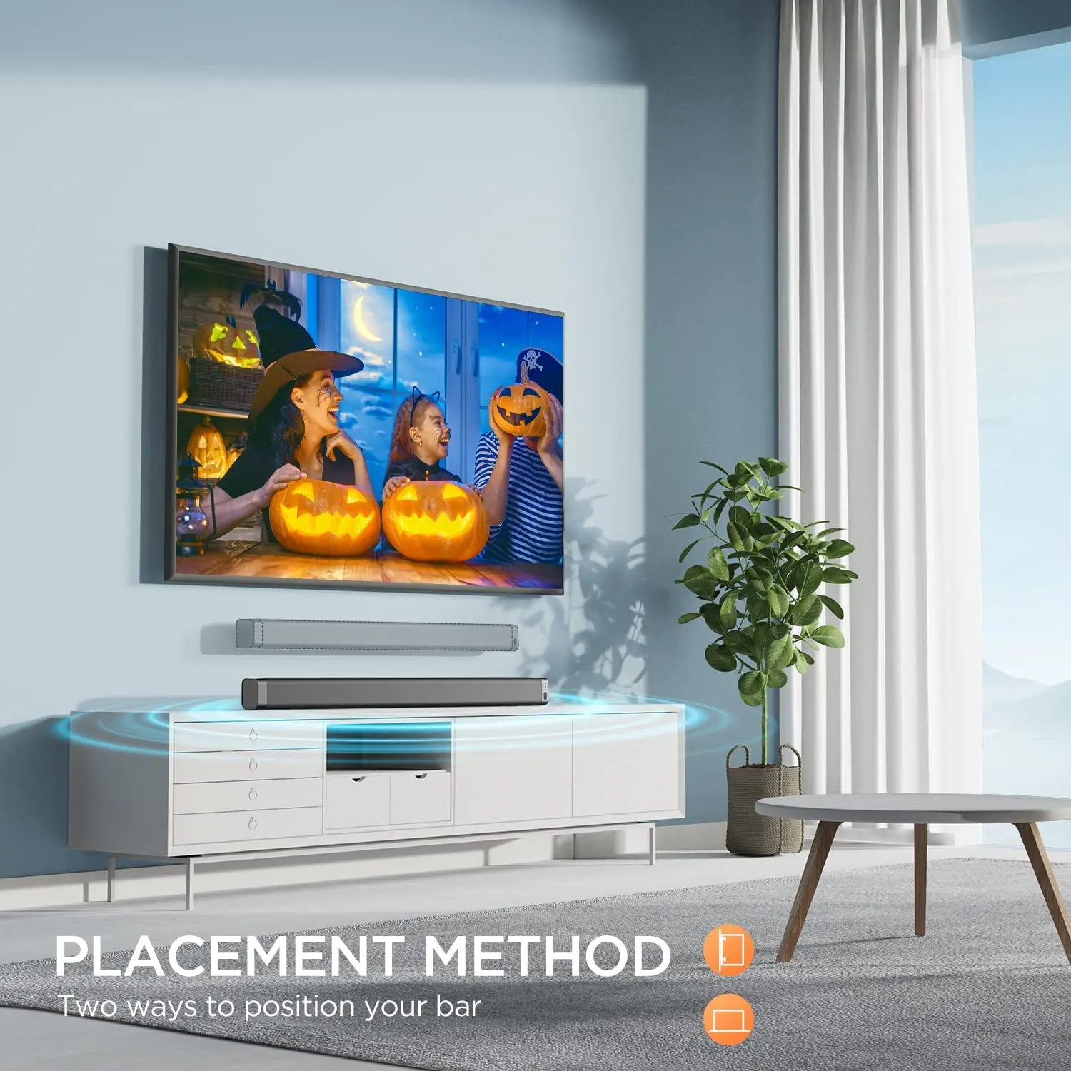 Звуковая панель адаптирована к любым брендам телевизоров на рынке, Беспроводная связь Bluetooth 5,0 совместима с телефонами безупречно одновременно. Поддержка AUX/RCA/Optical/USB нескольких методов проводного подключения. С стабильной передачей, эффективной производительностью, сильной защитой от помех, что дает вам новый уровень акустической подземной никогда раньше.