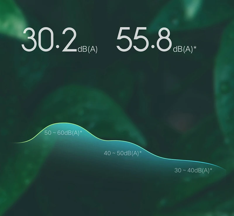30 дБ (А) минимальный шум, 55,8 дБ (А) максимальный шум