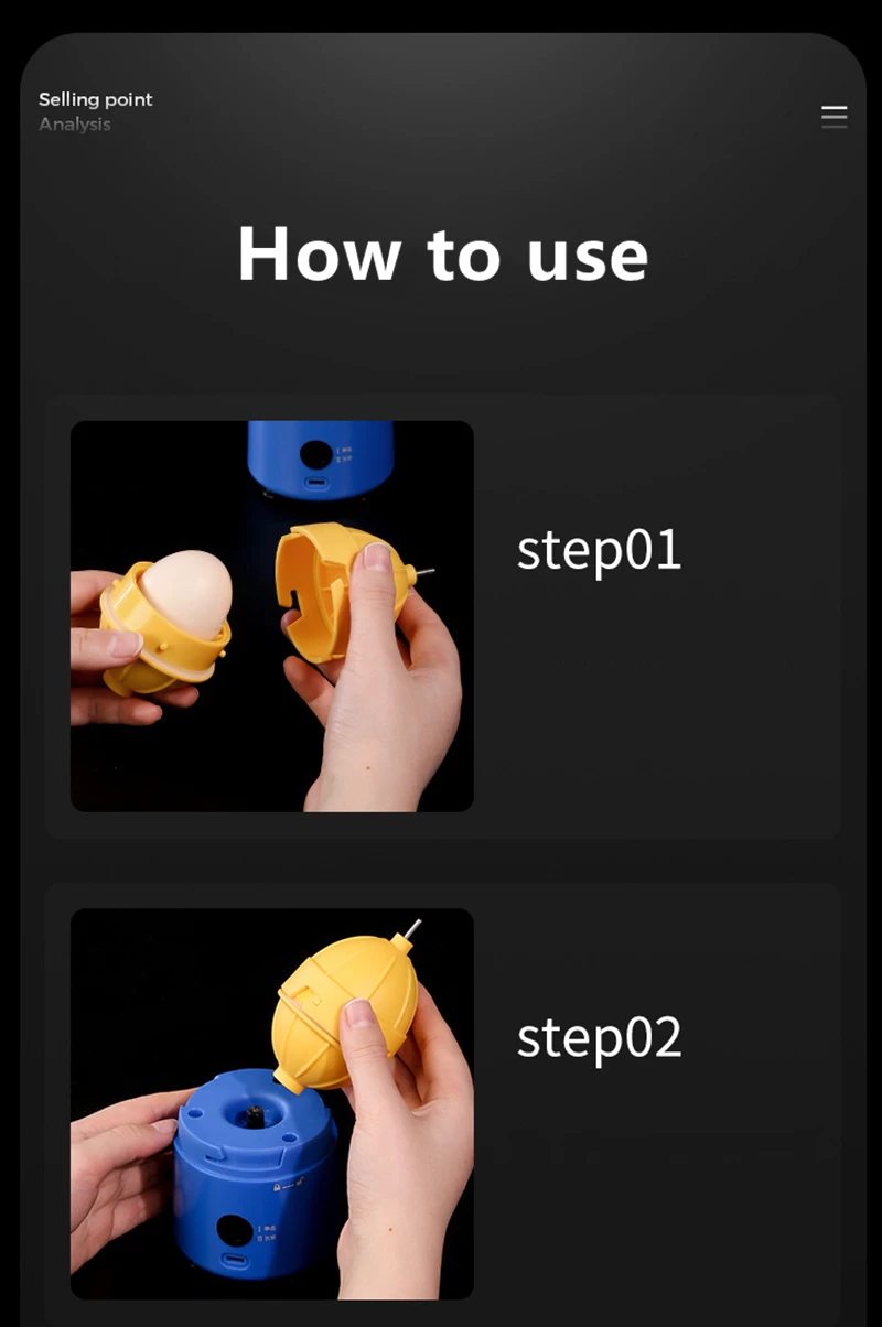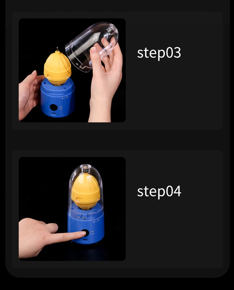 1. Принцип работы: яичный белок и желток смешиваются более равномерно с помощью центробежной силы, не повреждая яичную скорлупу.