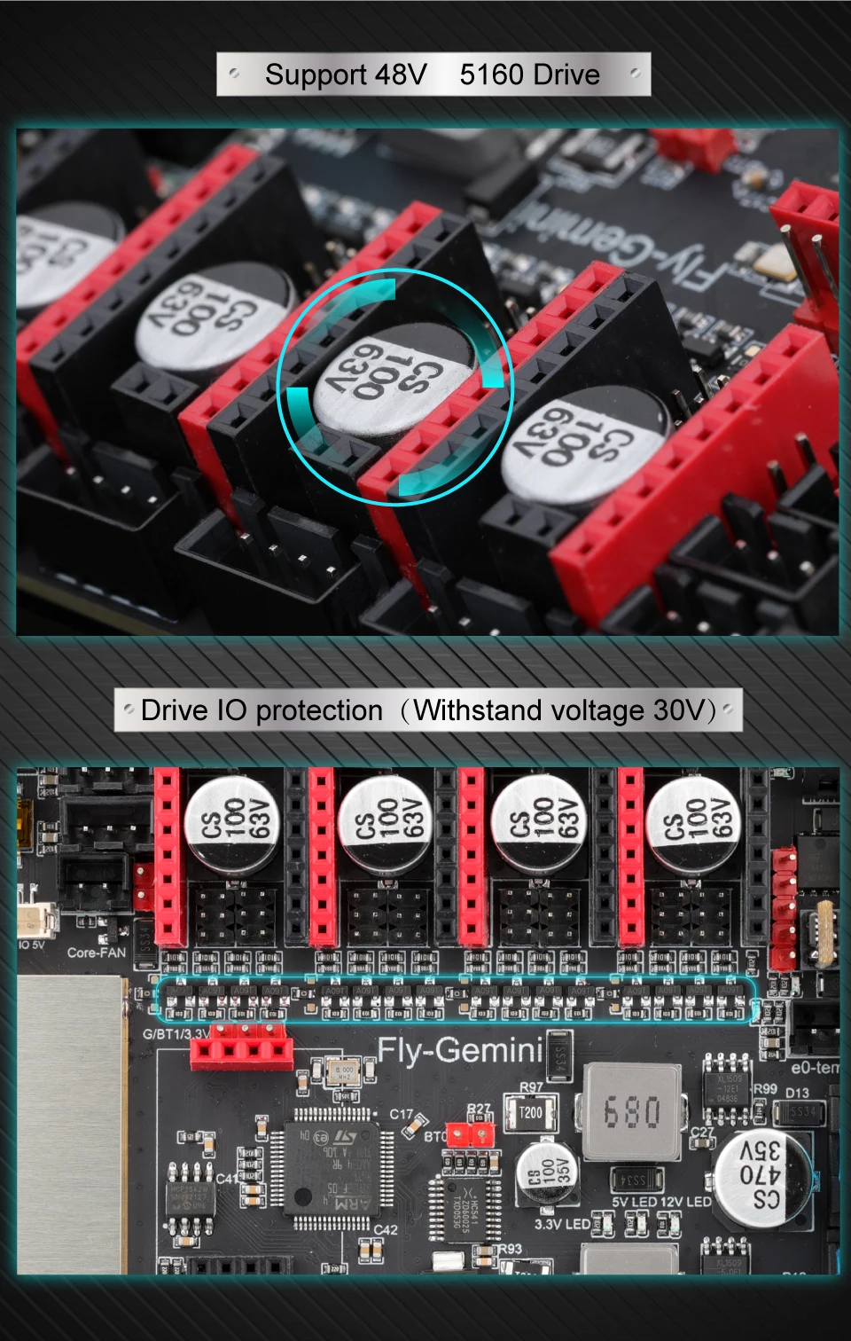 Мы рады сообщить о новой обновленной материнской плате Gemini V2. В настоящее время на плате имеется 1 Гб оперативной памяти DDR, что позволяет запускать полный рабочий стол (на основе Armbian). Все драйверы поддерживают напряжение до 48 В. Плата может использоваться как с прошивкой Klipper, так и с RRF и может даже запускать экран klipper при использовании последней платы SHT. Поскольку у Gemini v2 есть как плата управления (STM32), так и плата linux в одной посылка, Raspberry Pi (которые в настоящее время очень дорогие) не требуется.