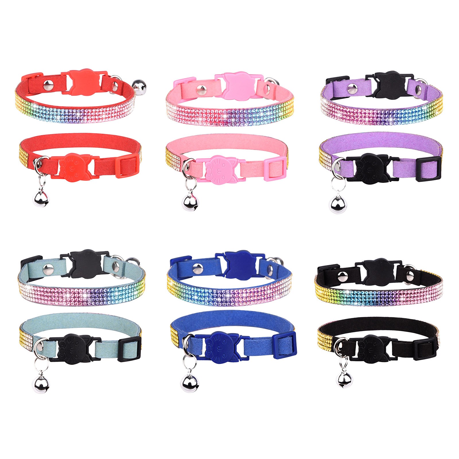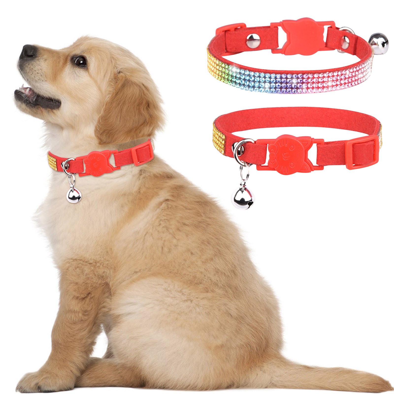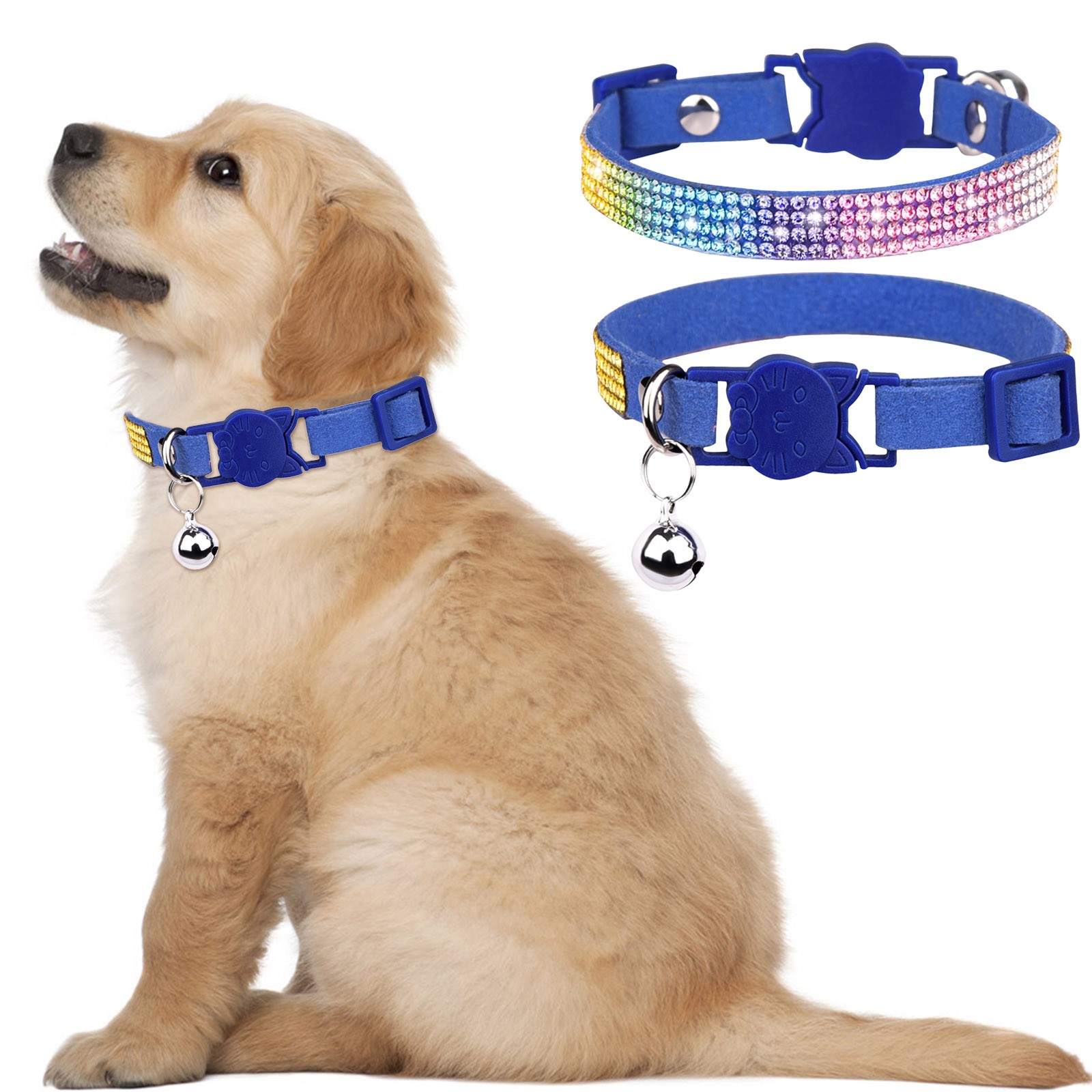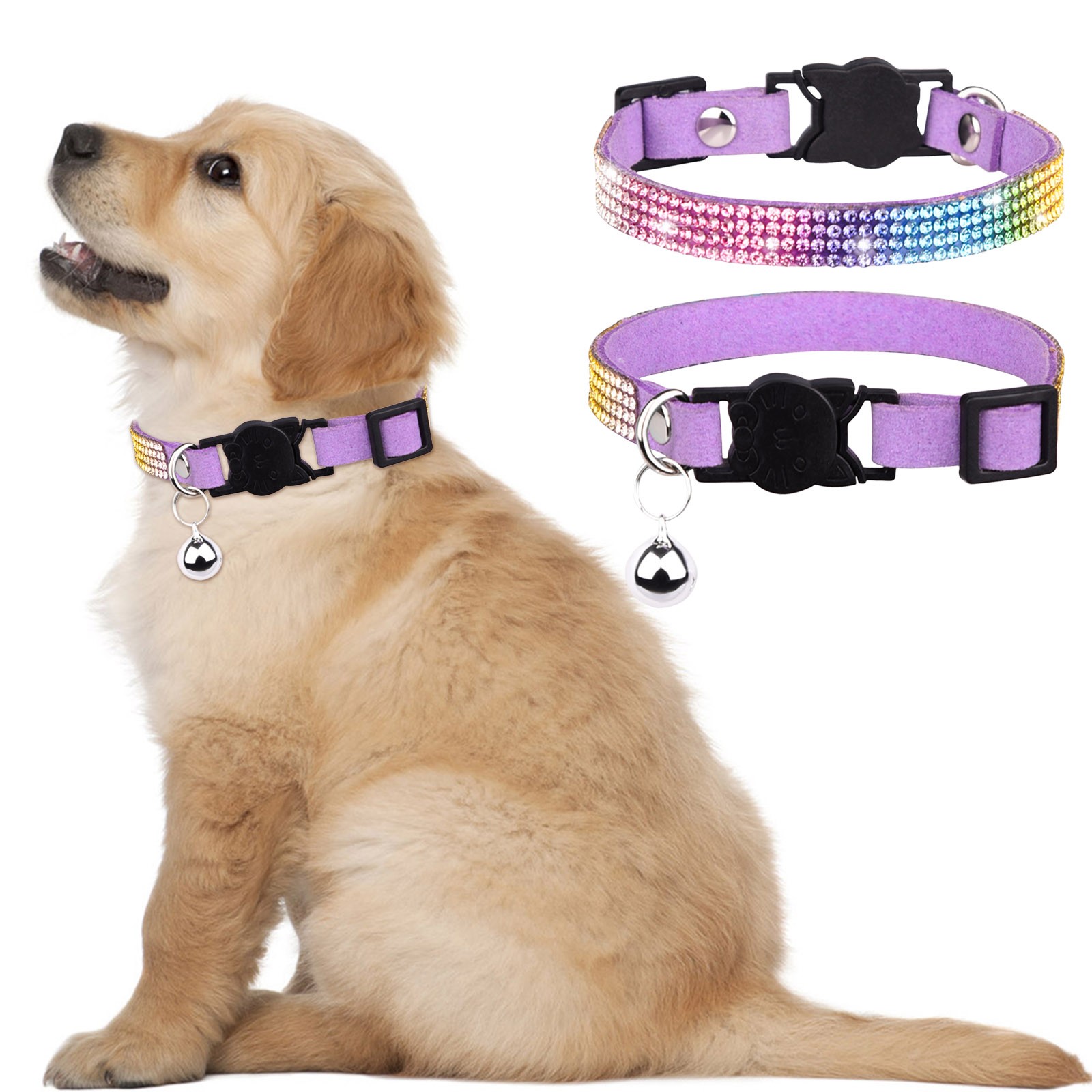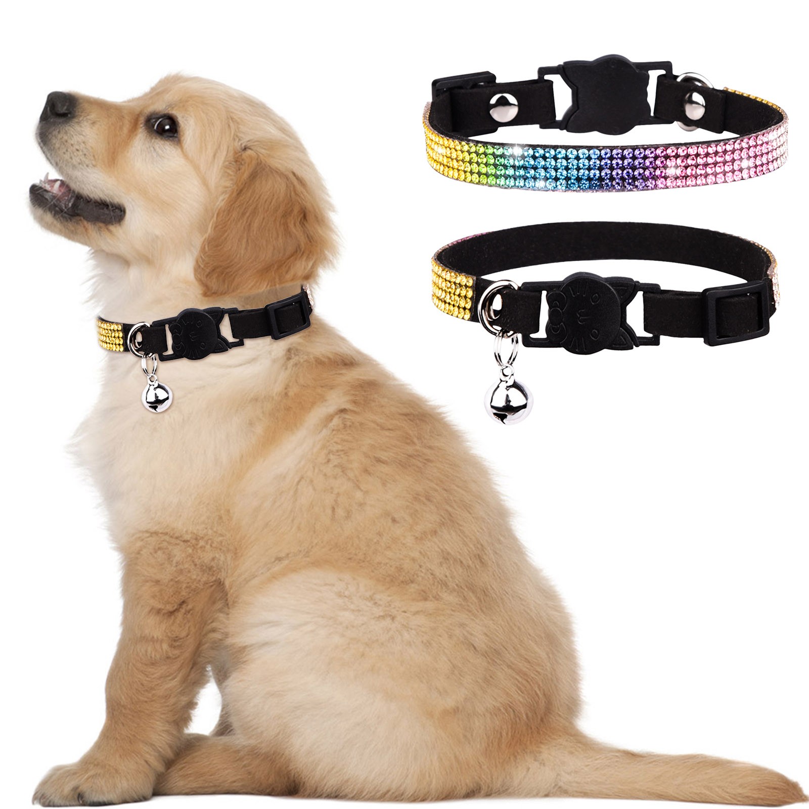 Все воротники имеют прочную пряжку, с сварным кольцом D, чтобы повысить прочность. Каждый галстук-бабочка прикреплен к воротнику, используя эластичный со стразами ремни. Вымойте воротник и стразы теплой водой и мягким мылом.