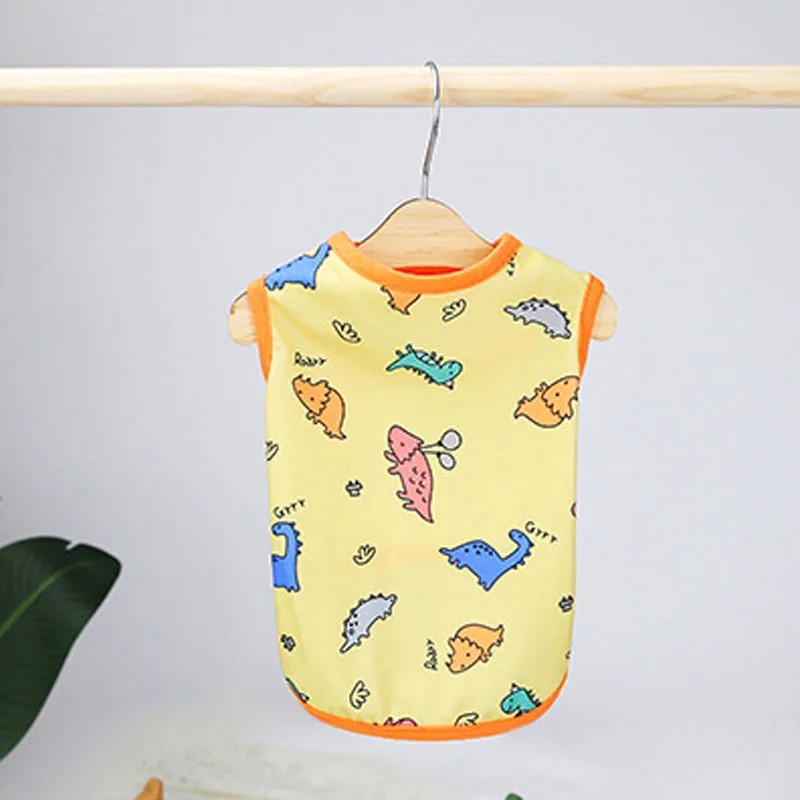 Жилет с принтом динозавра из хлопка и полиэстера, удобный и приятный для кожи, не вредит коже питомца. Принт динозавра, милый мультфильм. На выбор также есть разные цвета.