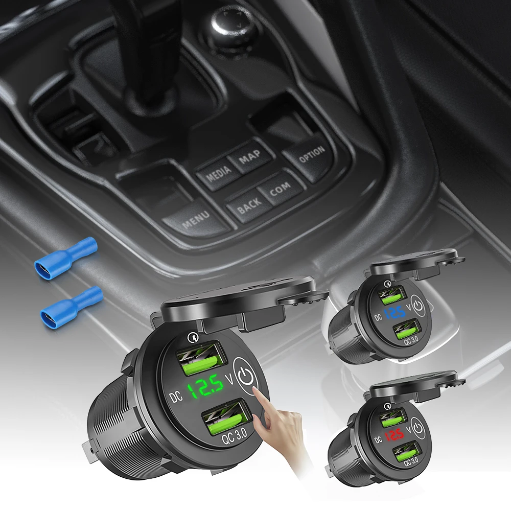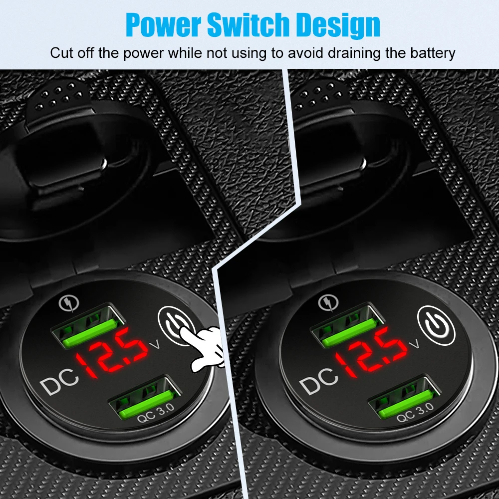 Extractme QC3.0 36W Car USB Charger with Switch On/Off Auto 12V/24V Socket Adapter Port Motorcycle Camper Boat accessories