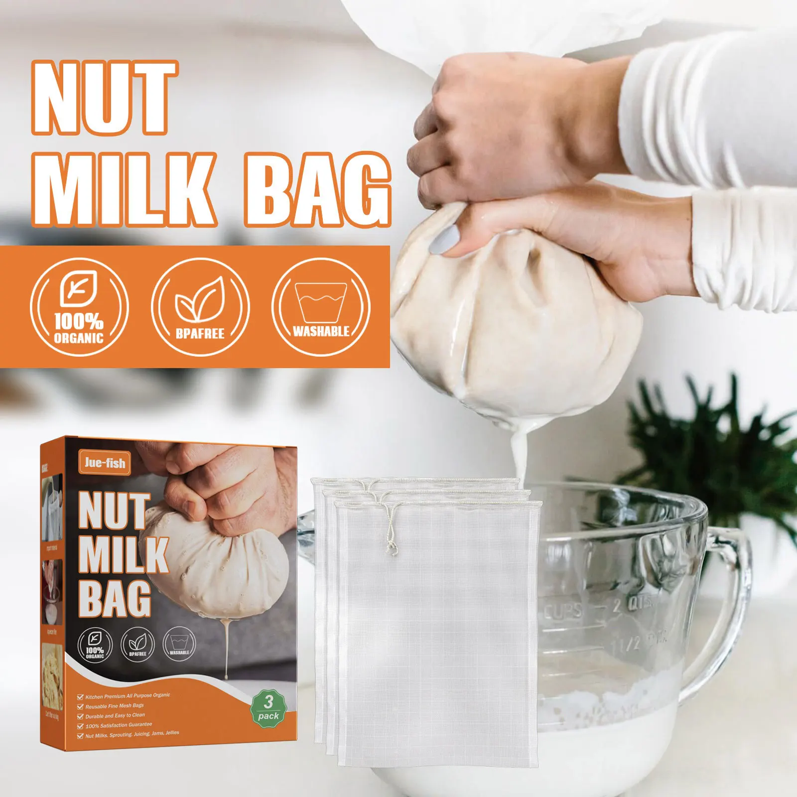 Мешки для Марли-многоразовые мешки для орехов, молока, чая, сока для сушки пищи, йогурта, сока, 3 штуки, тонкие сетчатые пакеты для холодного заваривания кофе и чая