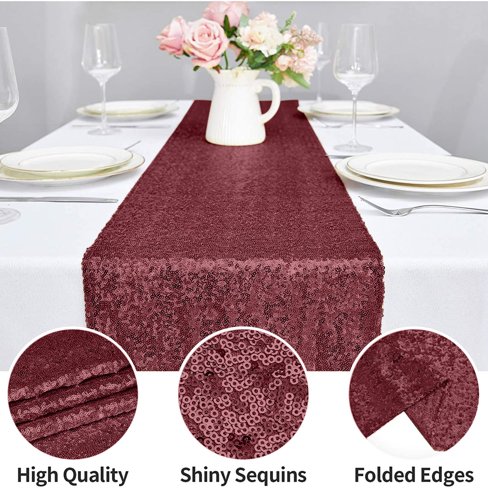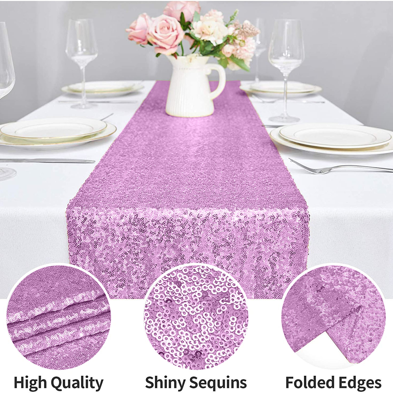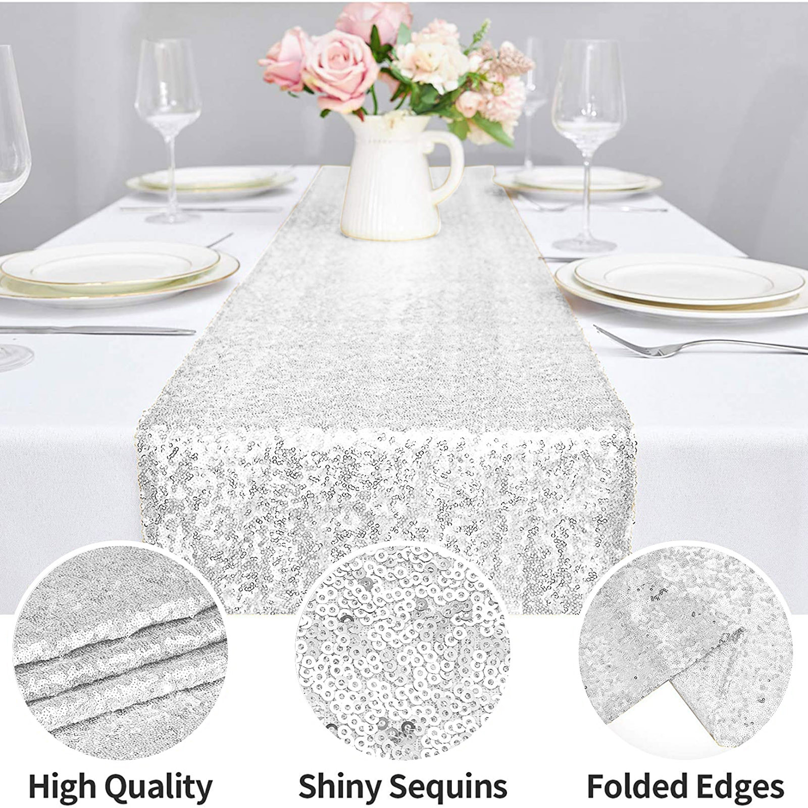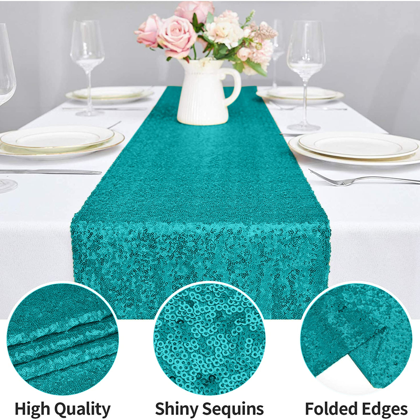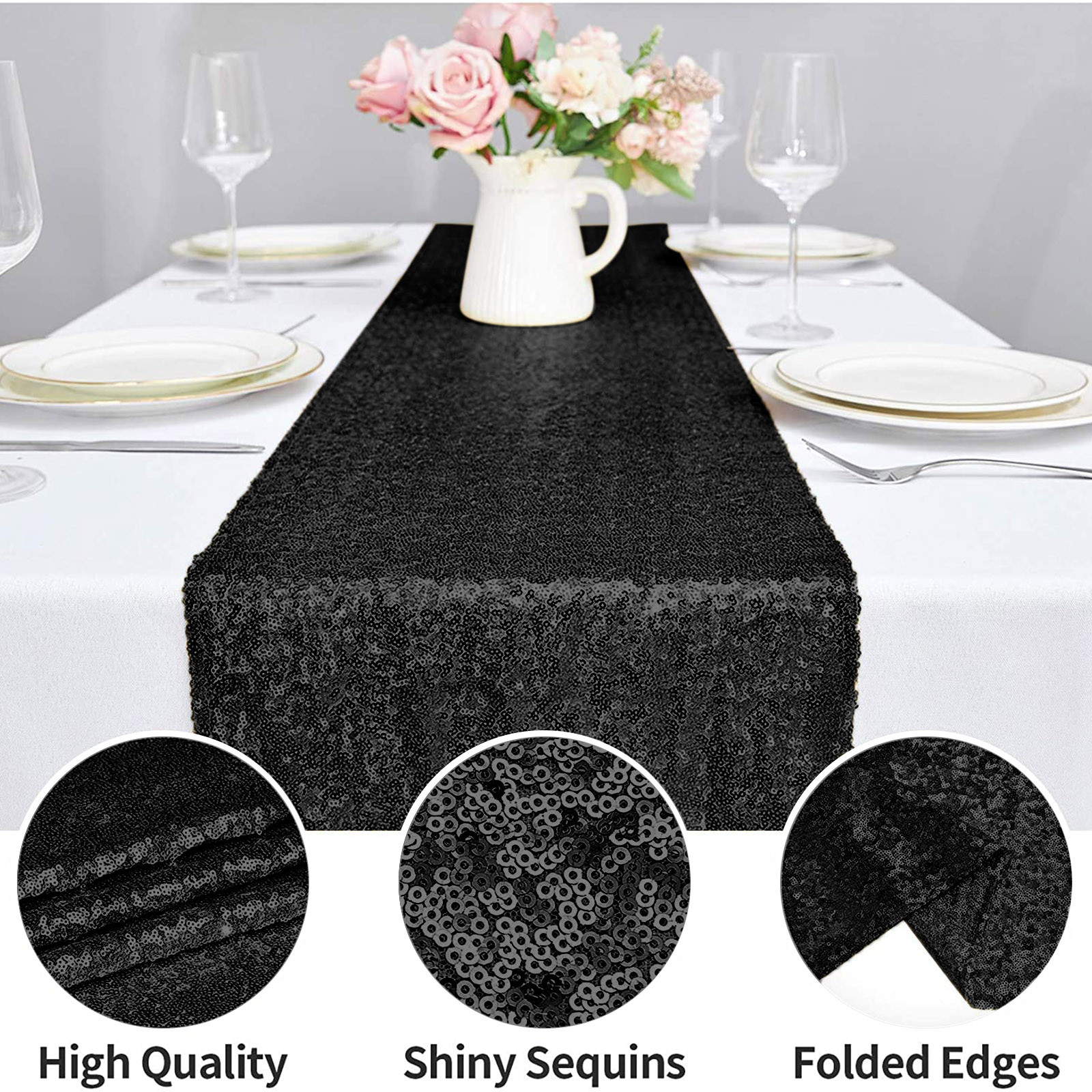 Подходящая сцена: скатерти и скатерти с блестками обеспечивают блестящий эффект под огнями или солнечными лучами, добавляя роскошь и блеск вашей декорированной сцене, делая стол идеальным и добавляя атмосферу к вашему мероприятию. Он используется для праздничных торжеств, банкетов, рождественских праздников, свадеб, свадебных ливней, детских ливней, украшений на Хэллоуин, дней рождения и жизненных событий.