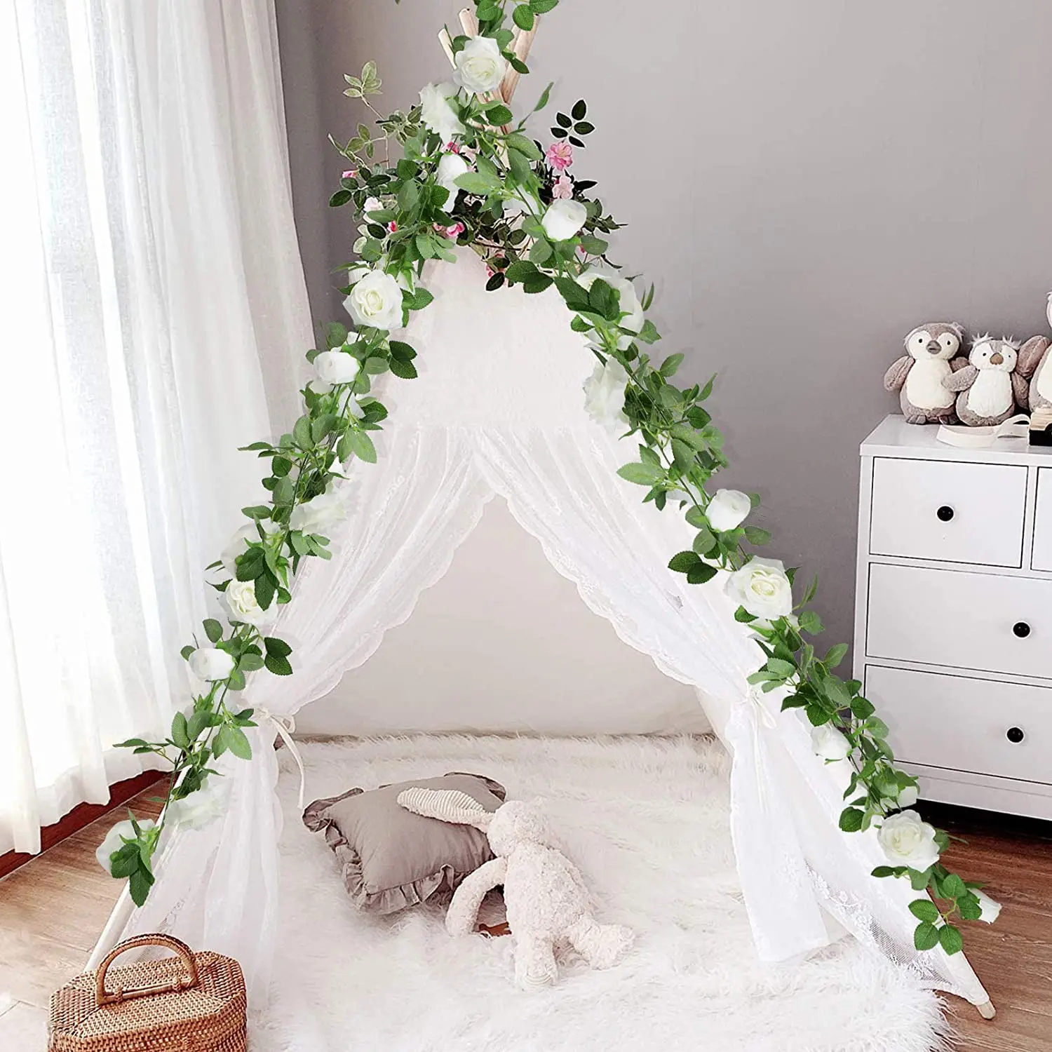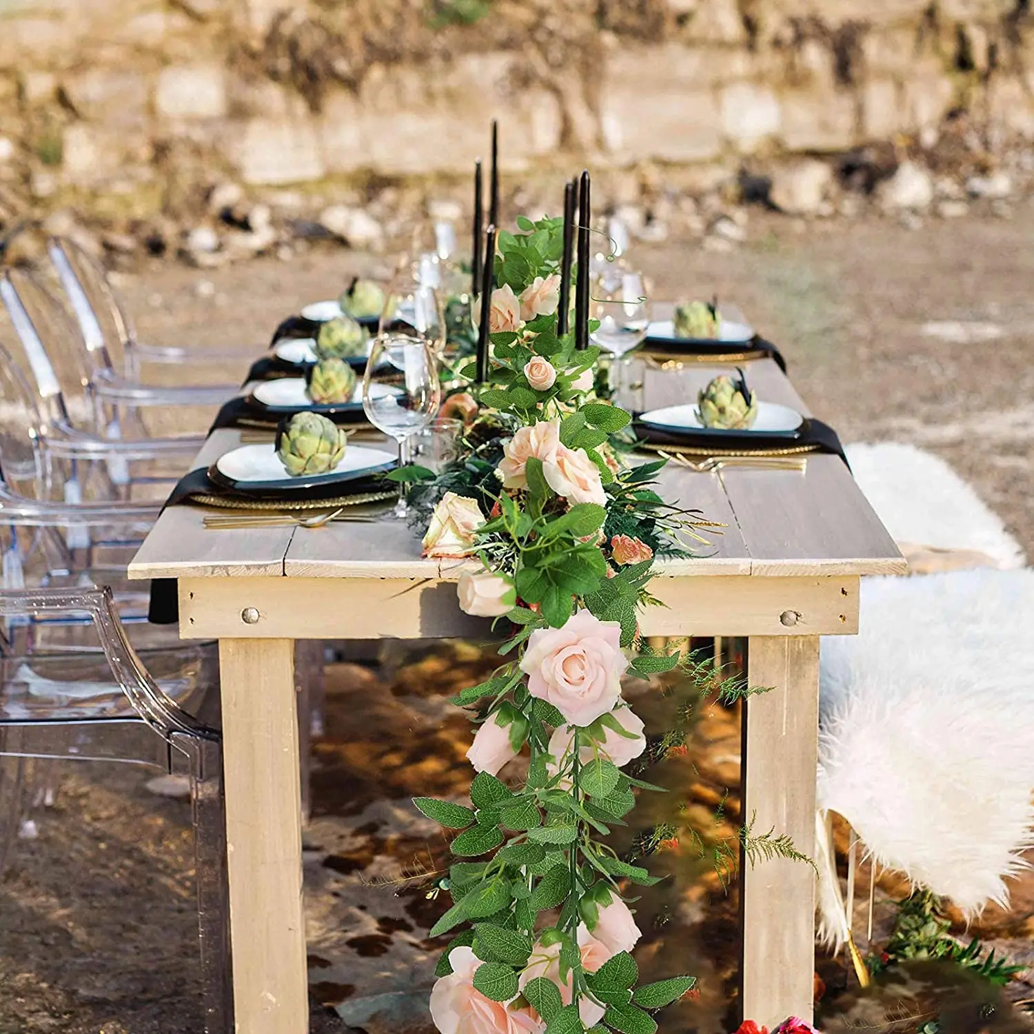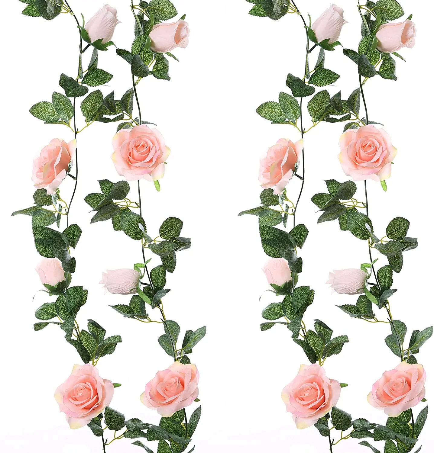 [Материал] цветочная гирлянда из эвкалипта изготовлена из прочного пластика, искусственные цветы и листья изготовлены из высококачественной шелковой ткани. Цвет теплый и романтичный, форма лозы естественная и Реалистичная.