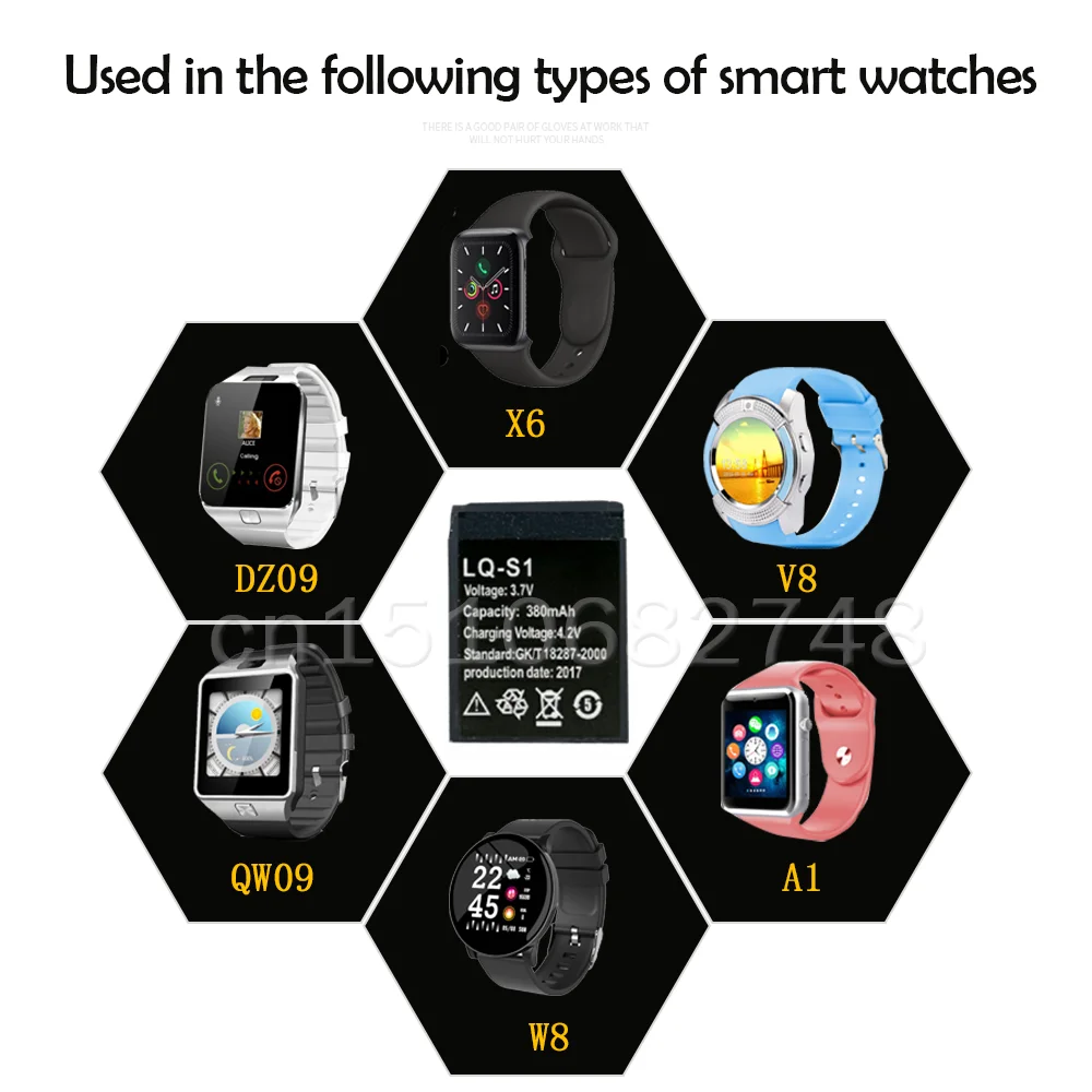 3,7 V 380mAh LQ-S1 Смарт-часы батарея перезаряжаемая литиевая батарея для AB-S1 DJ-09 DZ09 GJD HKS-S1 FYM-M9 SCX-M9 QW09 W8S