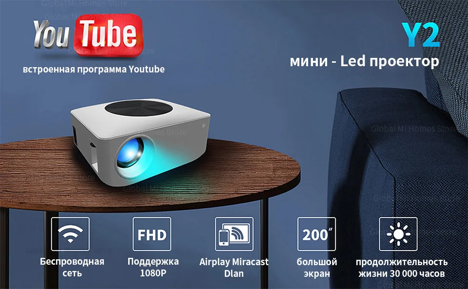 Глобальная версия Y2 мини-проектор светодиодный портативный видео Wifi кинотеатр телефон Lcd Full Hd Youtube Cinama проектор для домашнего офиса