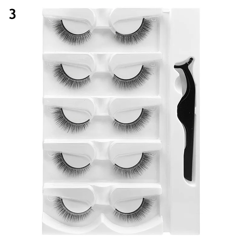 5 пар/кор. Самоклеющиеся Многоразовые Накладные ресницы с пинцет и клей-флуоресцентные ресницы натуральные вьющиеся ресницы