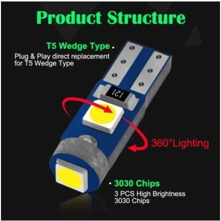 Автомобильный светодиодный светильник высокой яркости T5 3030-3SMD, освещение для кондиционирования воздуха, шестерня.