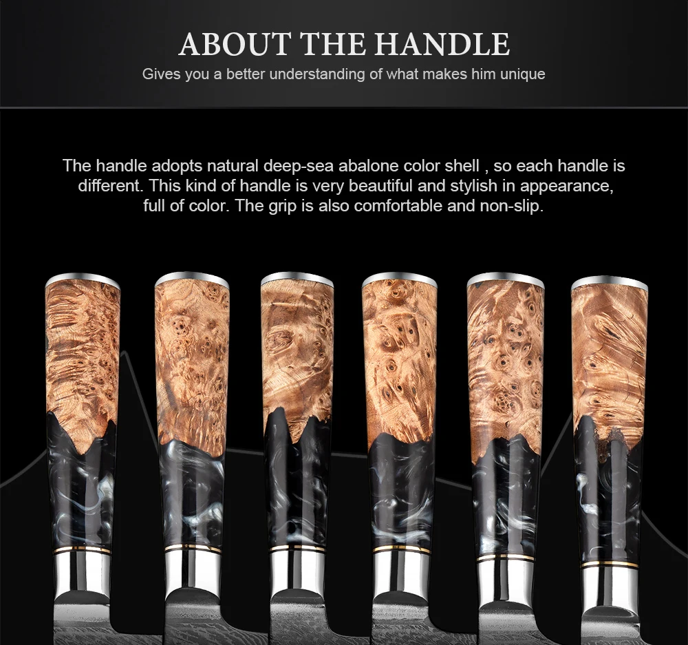 【Высокое качество материалов 】 лезвие всех книвов сделано из 67 слоев дамасской стали, прочный и долговечный.