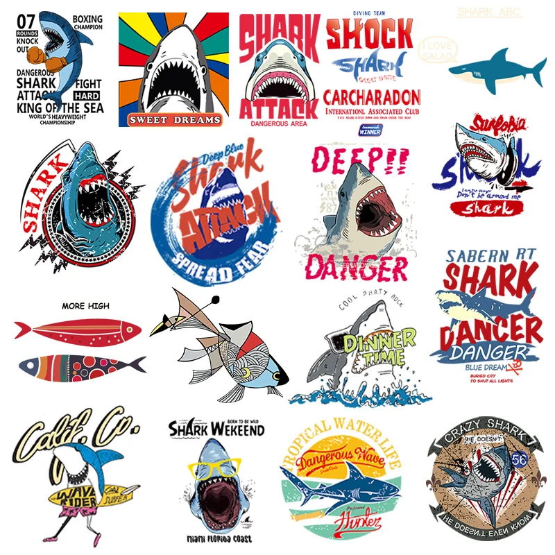 Мода океан Акула железа на патчи для DIY теплопередачи одежды футболки термопереноса наклейки украшения печати стикер