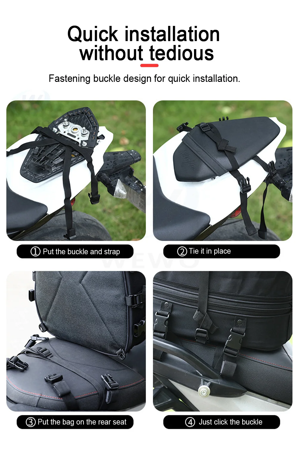 Нескользящая подошва с защитой от царапин. Просто оберните ремни фиксации вокруг хвоста или thecushion вашего мотоцикла, а затем закрепите ремни. Предоставление вам дополнительного места на вашем велосипеде. Функция блокировки на молнии (блокировка в комплект не входит), конечно, когда вы закончите Велоспорт, вы также можете наклонять его на плече.
