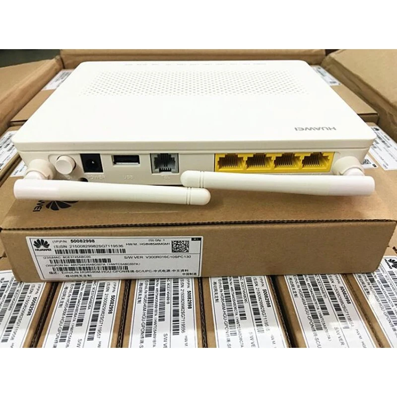 GPON ONT HG8546M.The HG8546M an optical network terminal (ONT), is a high-end home Bridge in FTTHsolution. By using the GPON technology, ultra-broadband access is provided for home and SOHO users.The HG8546M:4LAN+1POTS+USB+WIFI.TheHG8546M features high-performance forwarding capabilities to ensure excellent experience with VoIP, Internet and HD video services. Therefore, the HG8546M provides a perfect terminal solution and future-oriented service supporting capabilities for FTTH deployment.TheHG8546MProvide English firmware. And the default is with EU Power adapter.
