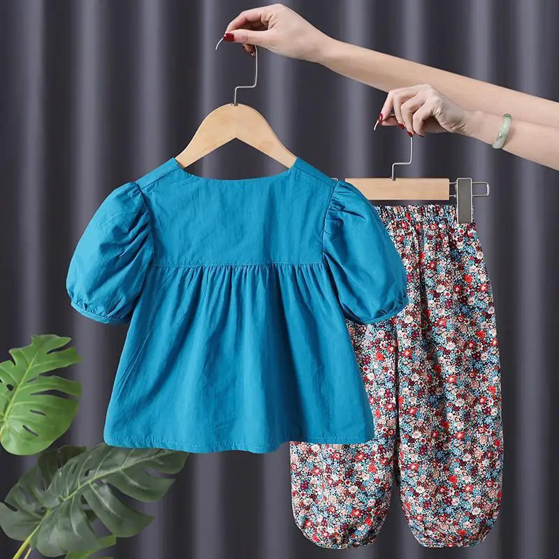 Материал: хлопковый топ + брюки из молочного шелка; Мягкая и дышащая летняя рубашка с короткими рукавами для маленьких девочек; Комплект из топа и штанов; Деликатный и приятный на ощупь, не вредит коже ребенка. Удобный и прочный, достаточно для повседневной носки вашего ребенка.
