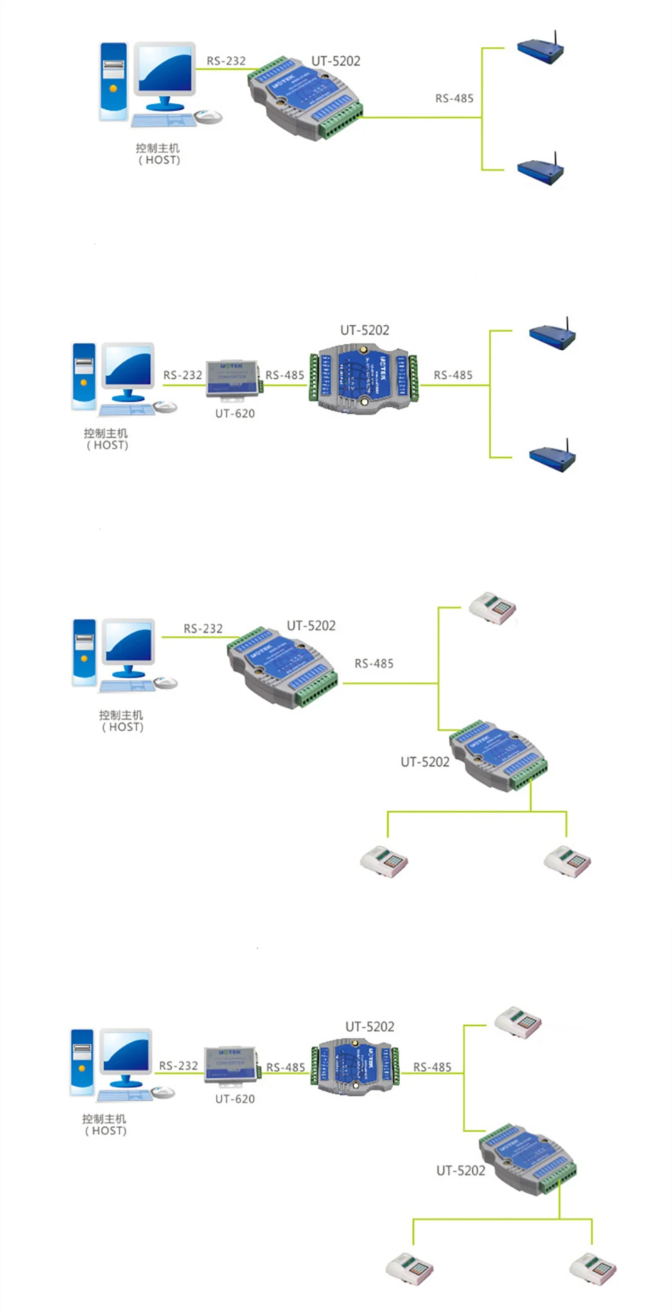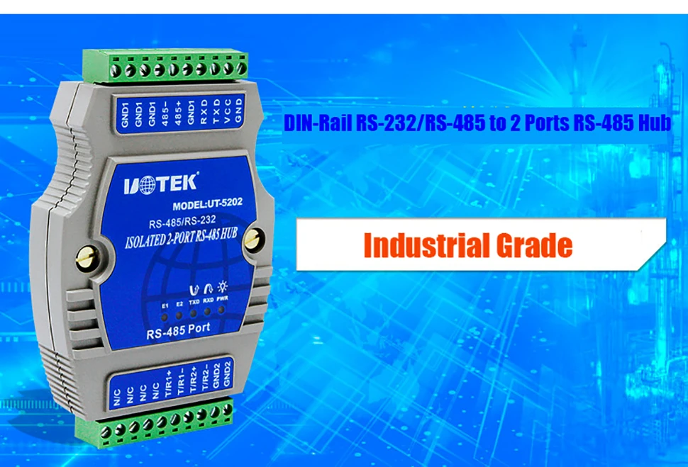 UT-5202-это хаб, специально разработанный для RS-485-шины в сложном электромагнитном поле. Скорость передачи данных для этого концентратора такая же высокая, как