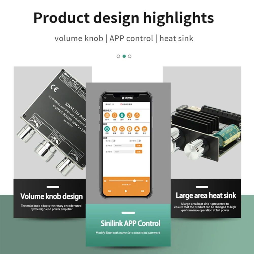 XY-E100H 50 Вт * 2 + 100 Вт Bluetooth-совместимость 5.1 Плата усилителя мощности AUX + U диск + USB звуковая карта вход 2,1 CH стерео домашняя музыка беспроводной модуль Аудио AMP TPA3116D2