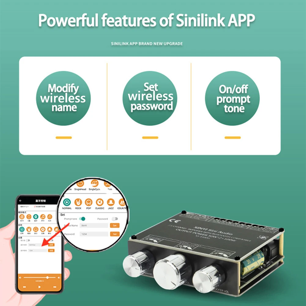 Уникальная функция: Поддержка приложения Sinilink, изменение имени, совместимого с Bluetooth, Установка пароля, совместимого с Bluetooth, включение/выключение звука