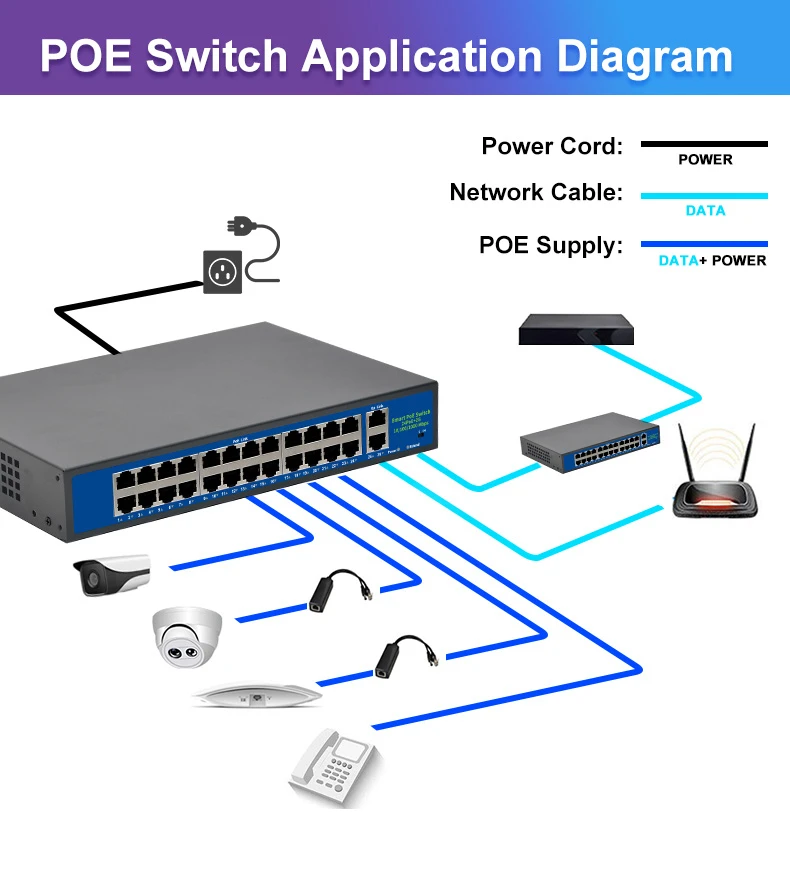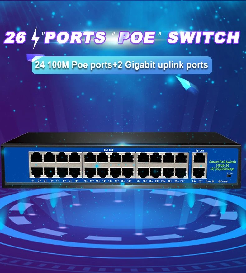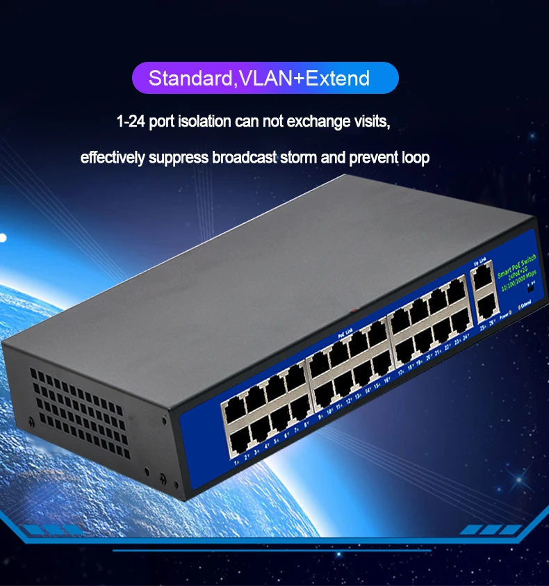 26 Порты и разъёмы POE коммутатор Ethernet 52 в VLAN 10/100 Мбит/с IEEE 802,3 Af/at Стандартный сетевой коммутатор для IP CCTV камера Камера Беспроводной AP 250 м Обзор 24*10/100 Мбит/с POE порта; 2*100/1000 Мбит/с на ссылку порт Поддержка Vlan на расстоянии 250 м Поддержка IEEE802.3AF/AT Вся мощность: 400 Вт (52 в 7,7a) Все порты поддерживаются MDI/MDIX auto flip и само согласование Поставка 24 10/100Mpbs Адаптивная Высокоскоростная передача данных пакет без потери порта. Поддержка управления потоком IEEE802.3x для полнодуплексного режима и обратного давления для полудуплексного режима. Каждый порт Макс. Источник питания достиг 30 Вт.