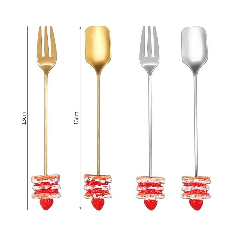 Ложка-вилка идеально подходит для фруктов, тортов и других продуктов, удобна в использовании.