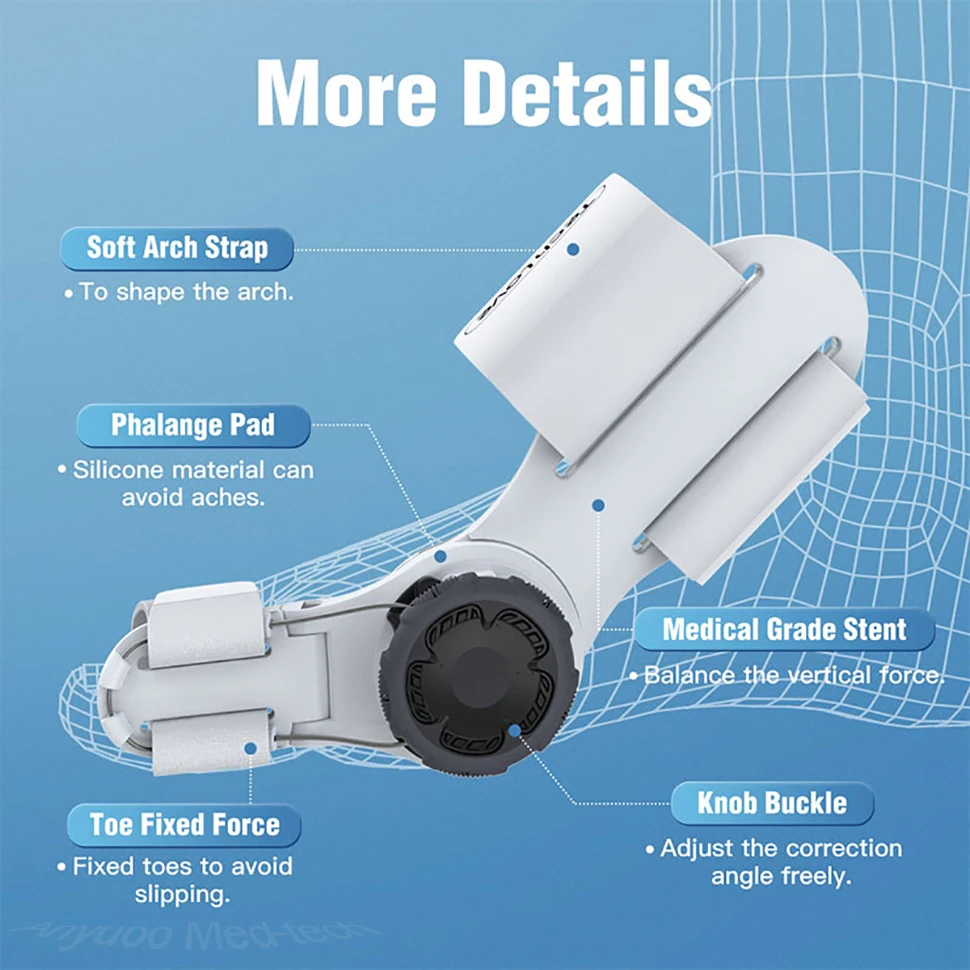Инновационный upgrade-3D корректор ручки имеет три патента. На обвязочном устройстве было произведено комплексное обновление. Регулировка ручки устройства коррекции. Регулировка ремешка устройства коррекции. Ручка может свободно регулировать угол. Для затягивания ремня угол коррекции может быть свободно отрегулирован в зависимости от степени вальгусной деформации, и масштаб может быть точно отрегулирован. Угол регулировки становится меньше, и коррекцию можно увидеть невооруженным глазом. Его также можно использовать для умеренной и сильной вальгусной деформации.
