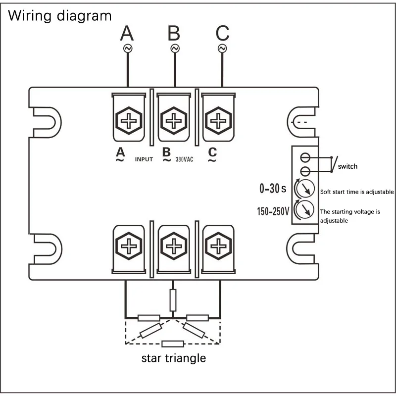 Использование: водяной насос, вентилятор, летательный аппарат, обычный двигатель с мягким пуском, заменитель инвертора с мягким пуском, заменитель для мягкого пуска star-delta и т. д. Проводка очень простая, не требуется контактор байпаса, и функция мощная.