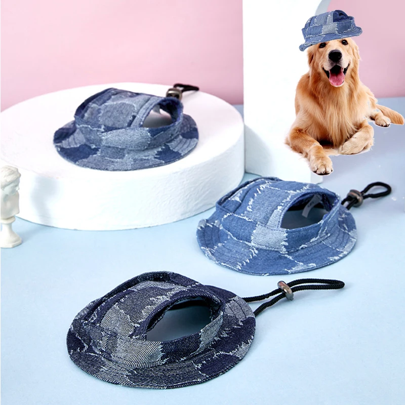 Солнцезащитная шляпа для питомцев, шапка для ухода за щенком, шляпа для рыбаков, шляпа для собак, джинсовая шляпа принцессы с открытыми ушами, милый Регулируемый солнцезащитный крем