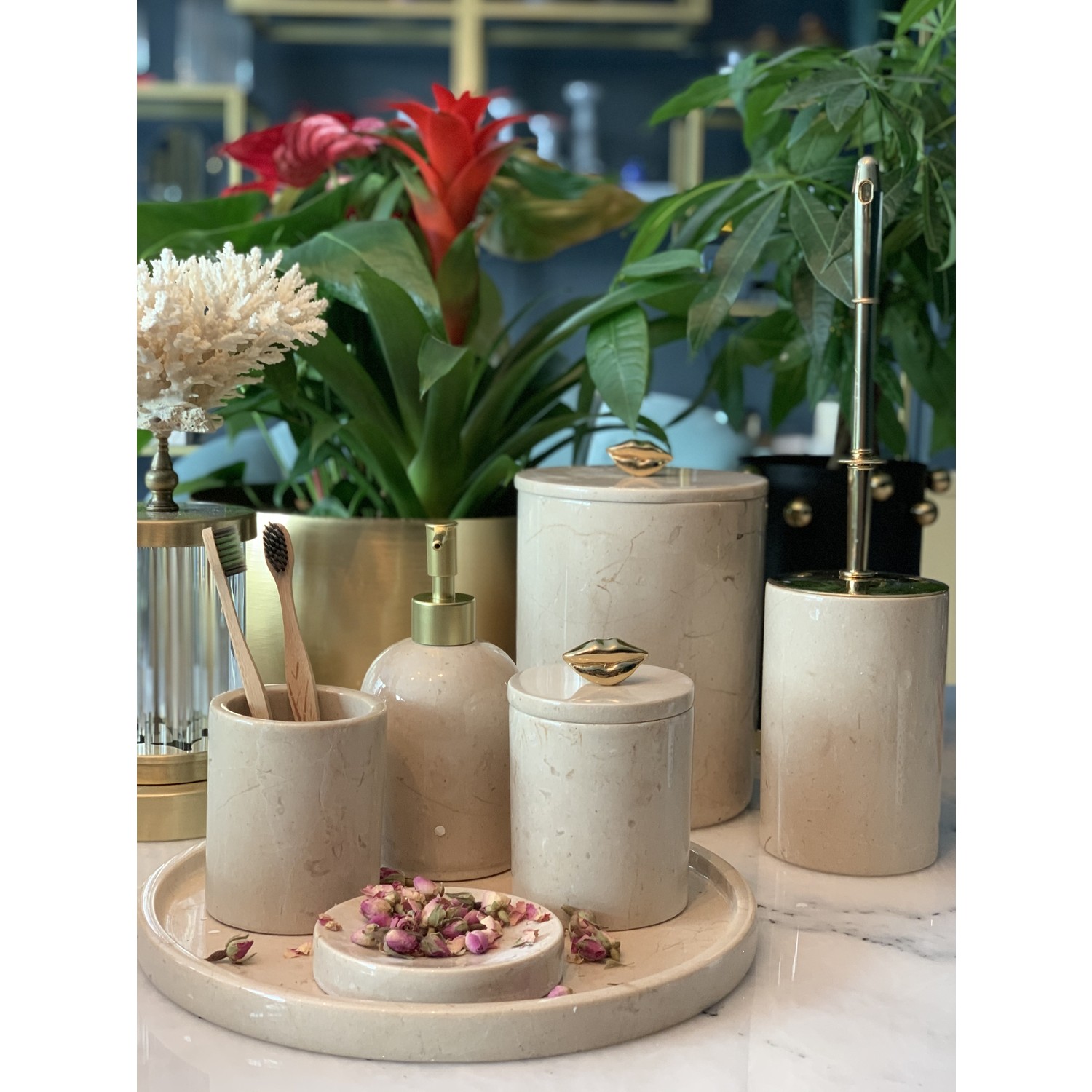 Бежевый Мраморный 7 шт набор для ванны для губ