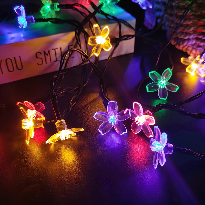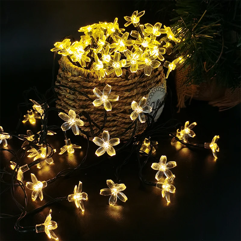 30/50 светодиодов, солнечные гирлянды для цветов, водонепроницаемый с вишней, цветок, сказочные гирлянды для улицы, дома, сада, Декор, лампы