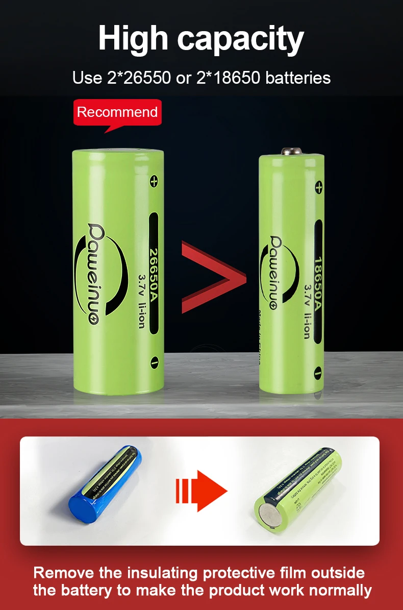 Наша батарея является модернизированной батареей большой емкости, рекомендуется выбрать комплект с батареей. 26650 Емкость аккумулятора: 6800 мАч, 18650 Емкость аккумулятора: 3600 мАч