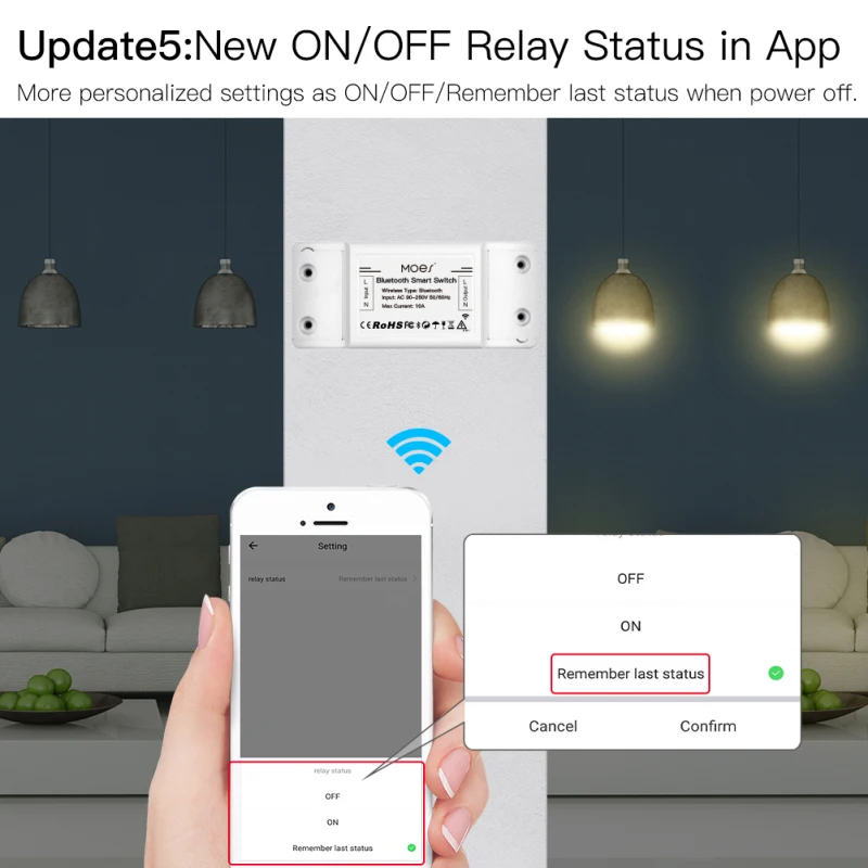Умный светильник Aubess 10A с Bluetooth совместимым модулем смарт-реле, таймером и голосовым управлением, работает с Alexa/Google Home/APP