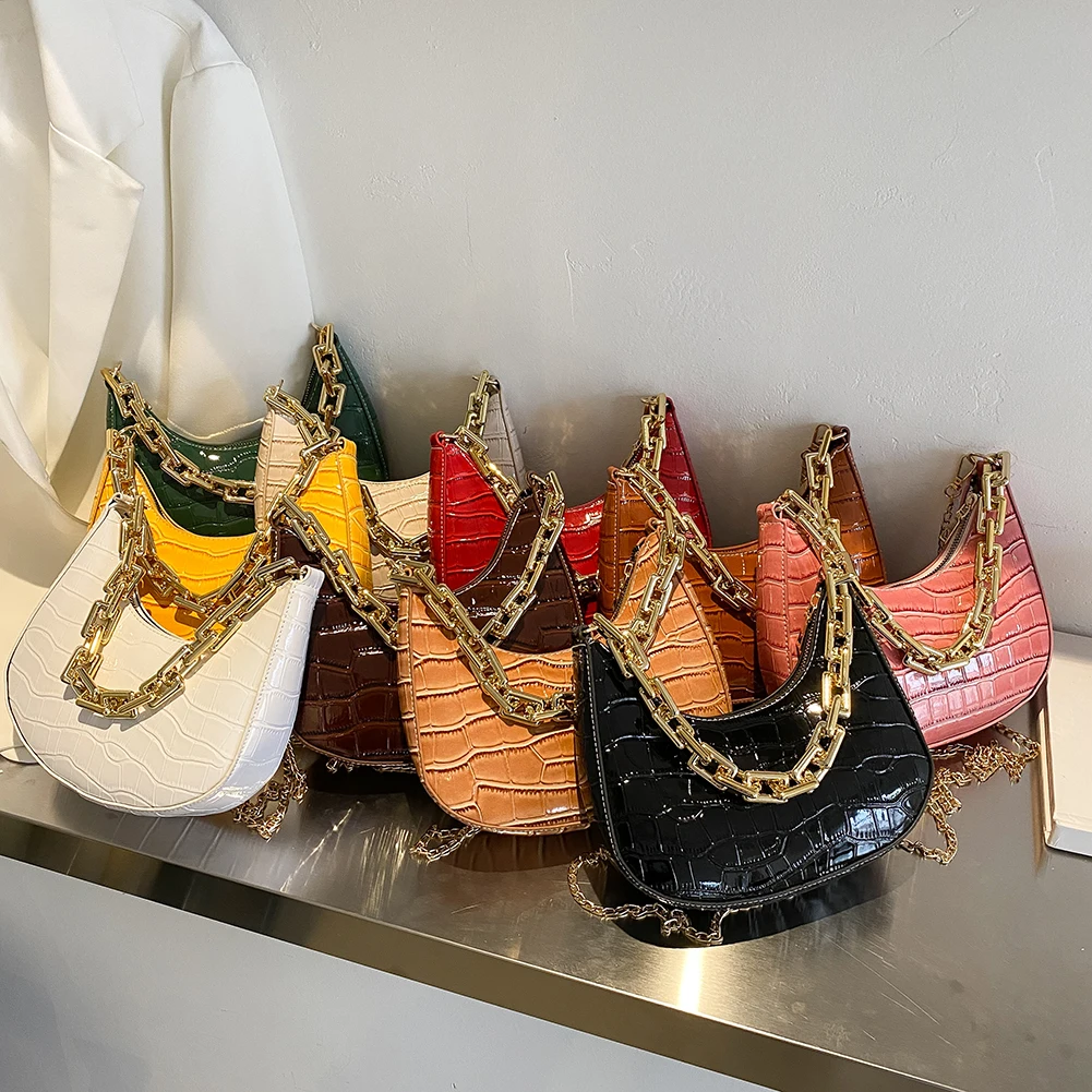 Винтажная женская сумка-мессенджер из искусственной кожи с узором «Аллигатор» и цепочкой через плечо, повседневная женская однотонная маленькая сумка-хобо, сумки