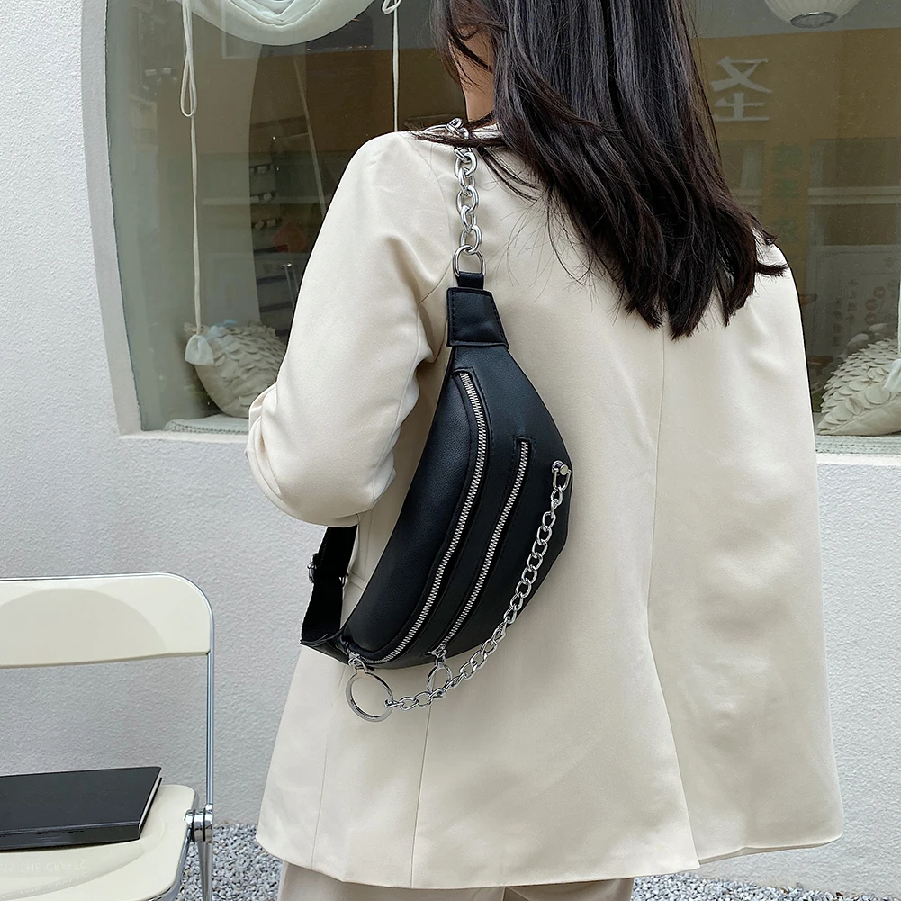 Модная женская многослойная сумка-мессенджер из искусственной кожи через плечо, повседневная женская однотонная большая сумка с цепочкой, сумки на пояс