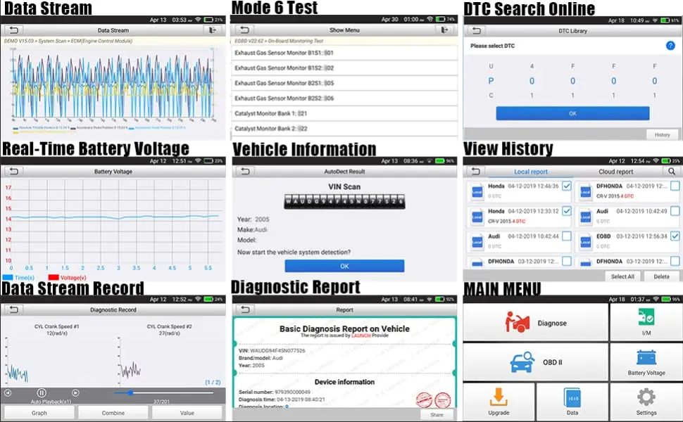 Launch scanner crp123X диагностический сканер-это инструмент автоматической передачи, который поддерживает Считывание/стирание кодов, просмотр данных в реальном времени и отключение предупредительного светильник в системе передачи. Сканер LAUNCH CRP123X obd2 предоставляет пользователю подробный обзор работы и функций этих критических компонентов, что позволяет быстро, точно и полностью диагностировать существующие или возможные проблемы.