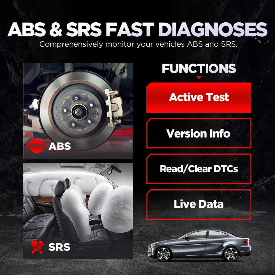 2. Чтение/сброс ДКН-прочитайте диагностические коды неисправностей, чтобы узнать причины предупреждение светильник и неисправностей автомобиля. После ремонта вы можете очистить DTCs, чтобы выключить светодиодный светильник ABS или SRS.