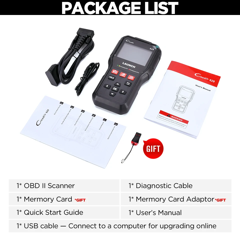 LAUNCH Creader CR629-это Улучшенный сканер OBD2, предназначенный для мониторинга двигателя, ABS и SRS. Вы можете устранить проблемы, связанные с выбросами, с помощью всех функций obd2. Этот сканер, построенный с помощью тестов на высшем уровне и диагностических систем ABS и SRS, контролирует состояние работы ABS и SRS, чтобы лучше поддерживать ваш автомобиль в максимальной производительности. Если вы хотите простой в использовании и многофункциональный автомобильный диагностический сканер, LAUNCH CR629 оснащен 3,5-выставочных витринах является первым инструмент, который вам нужен, чтобы иметь.