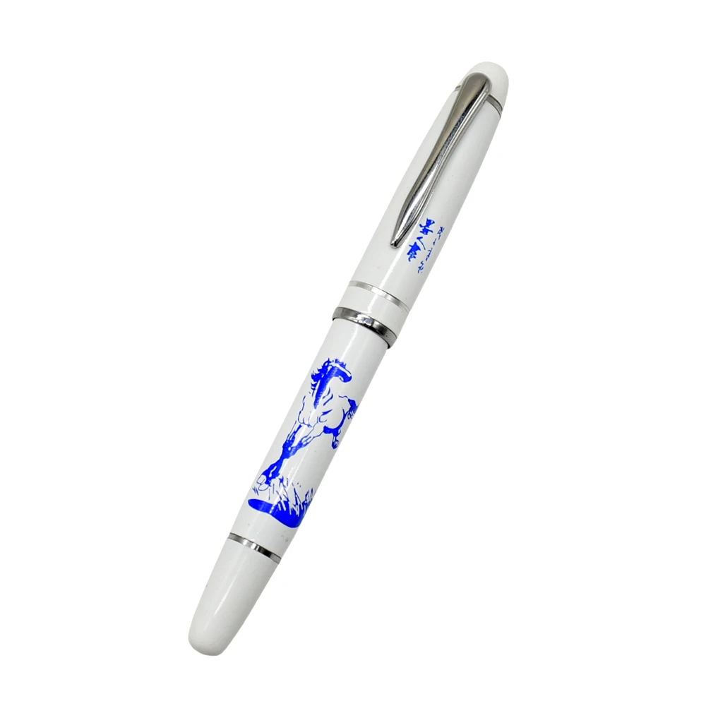 Стандартная классическая офисная синяя и белая фарфоровая Конская чернильная ручка F Nib Подарочная авторучка школьные ручки канцелярские принадлежности