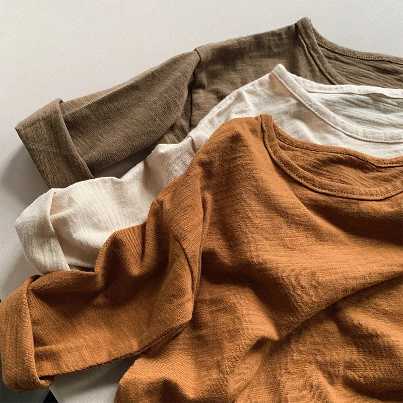 2022 г. Осенние корейские Детские однотонные хлопковые футболки с длинными рукавами