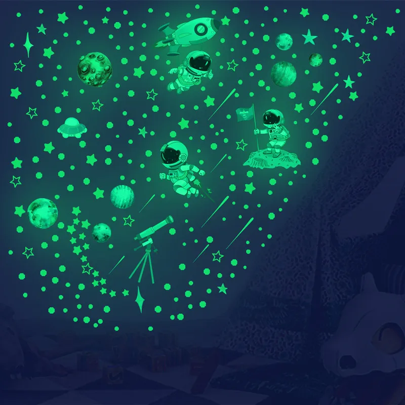 Светящиеся в темноте звезды для потолка Луна настенные наклейки галактика планеты для детей Девочки Мальчики украшение комнаты светящиеся наклейки Вселенная космический человек