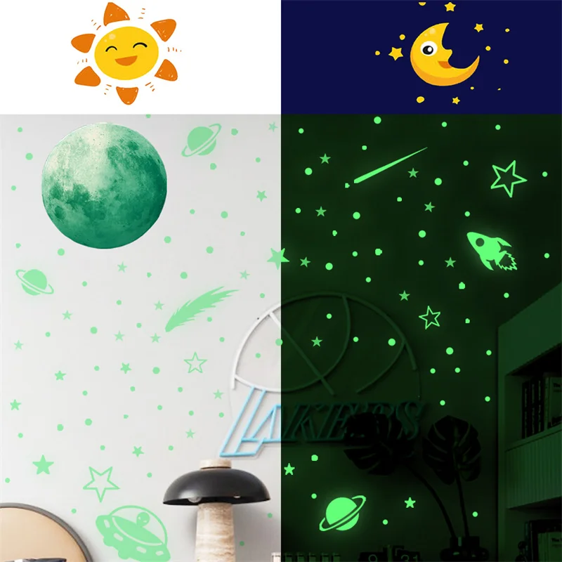 Светящиеся в темноте луна и звезды наклейки на стену галактика планеты светящаяся Наклейка Стикер для детской спальни декоративные